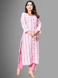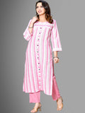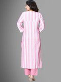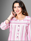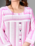 Womens Pink South Cotton Patta Striped Kurta
