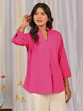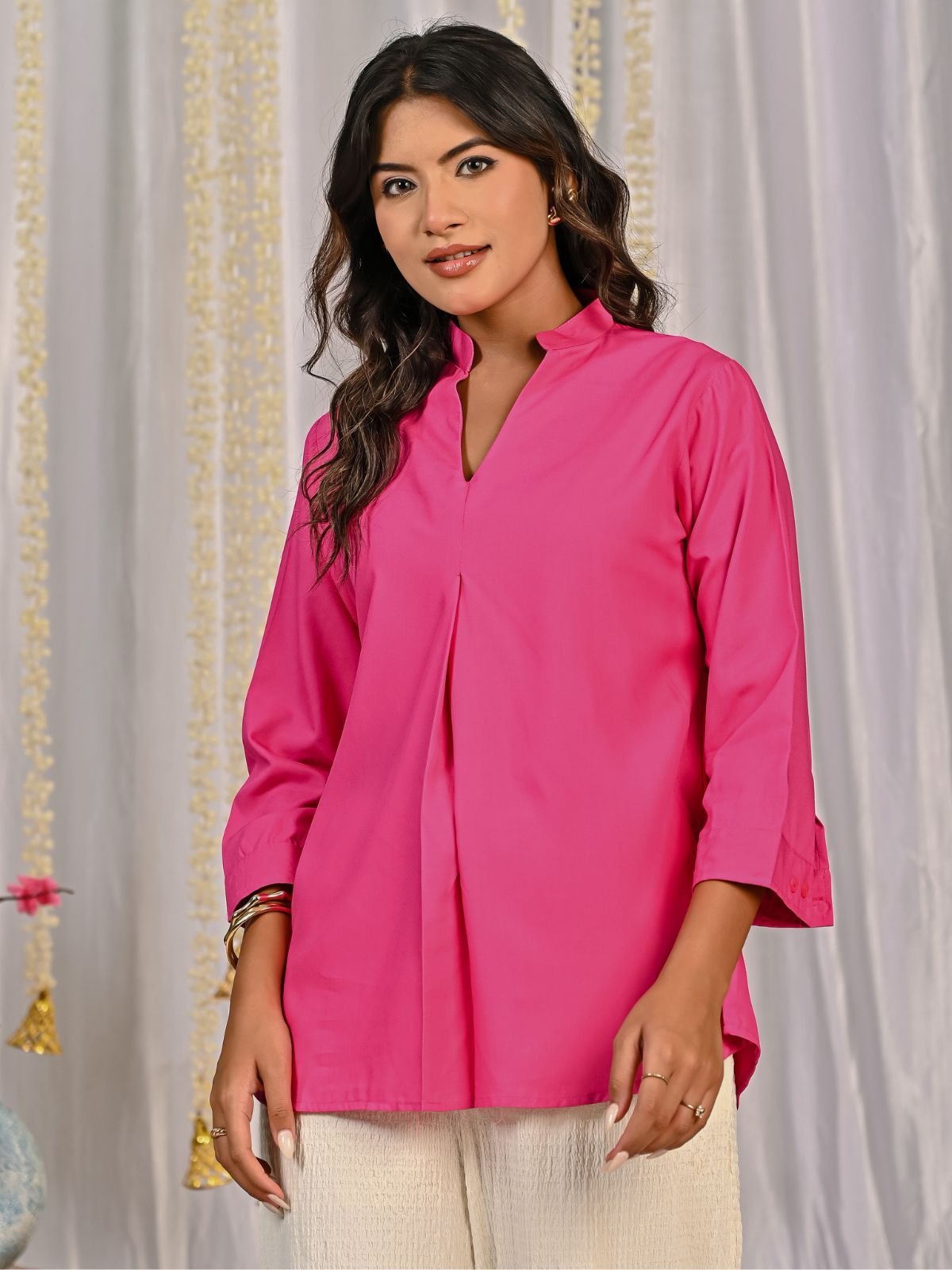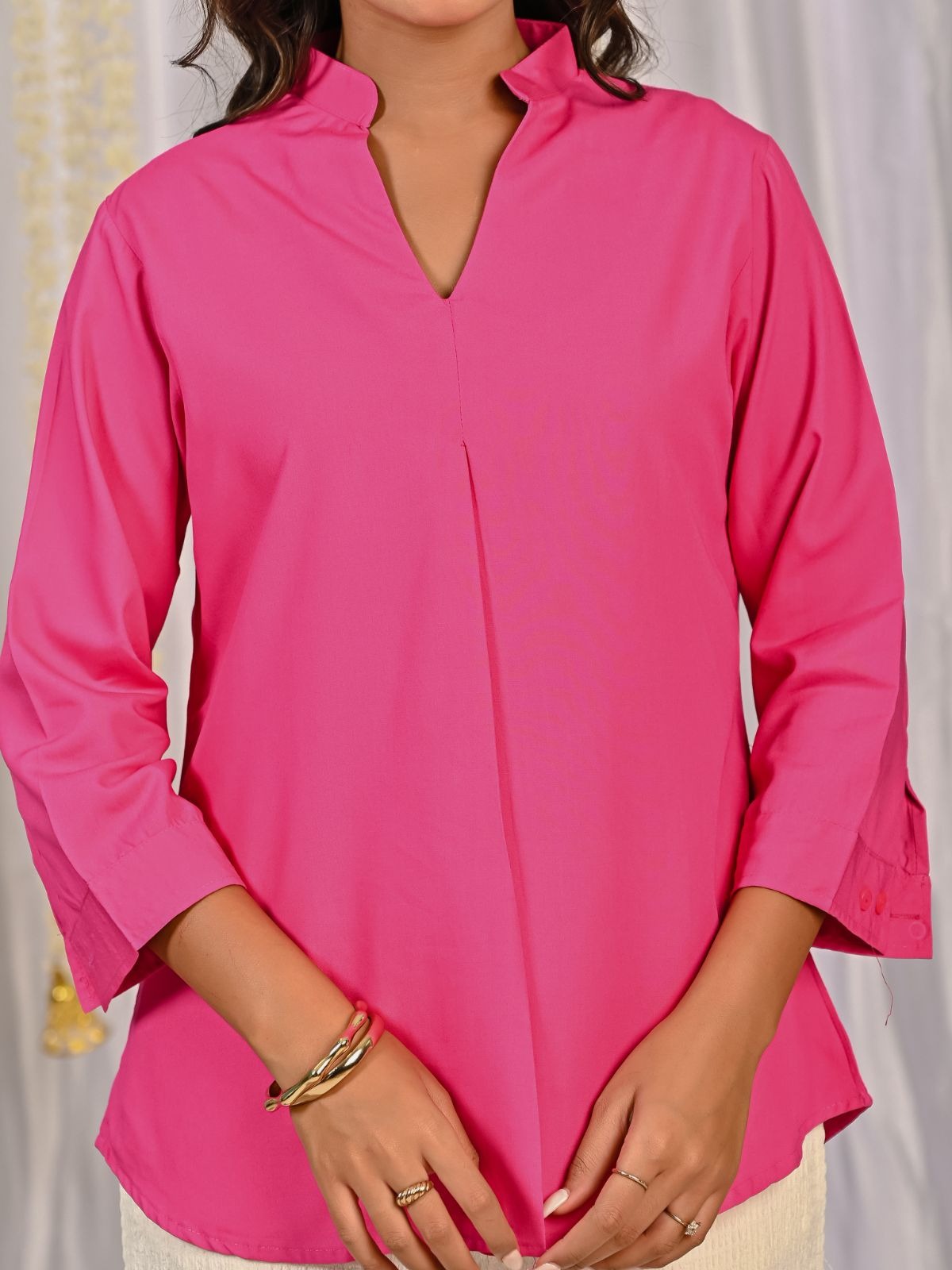 Discover our Solid Viscose V-Neck Collar Pleated Top for Women, designed to blend comfort with timeless style. Crafted from premium viscose fabric, this chic top features a flattering V-neck with a mandarin collar, elegant pleated detailing, and versatile 3/4th sleeves for a modern touch. Available in sizes S to 2XL and a wide range of 10 vibrant colors, it ensures the perfect fit for every woman. Ideal for both casual outings and office wear, this stylish top can be effortlessly paired with jeans, trousers, or skirts for a polished look. Soft, breathable, and easy to style, it’s a wardrobe .