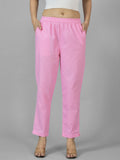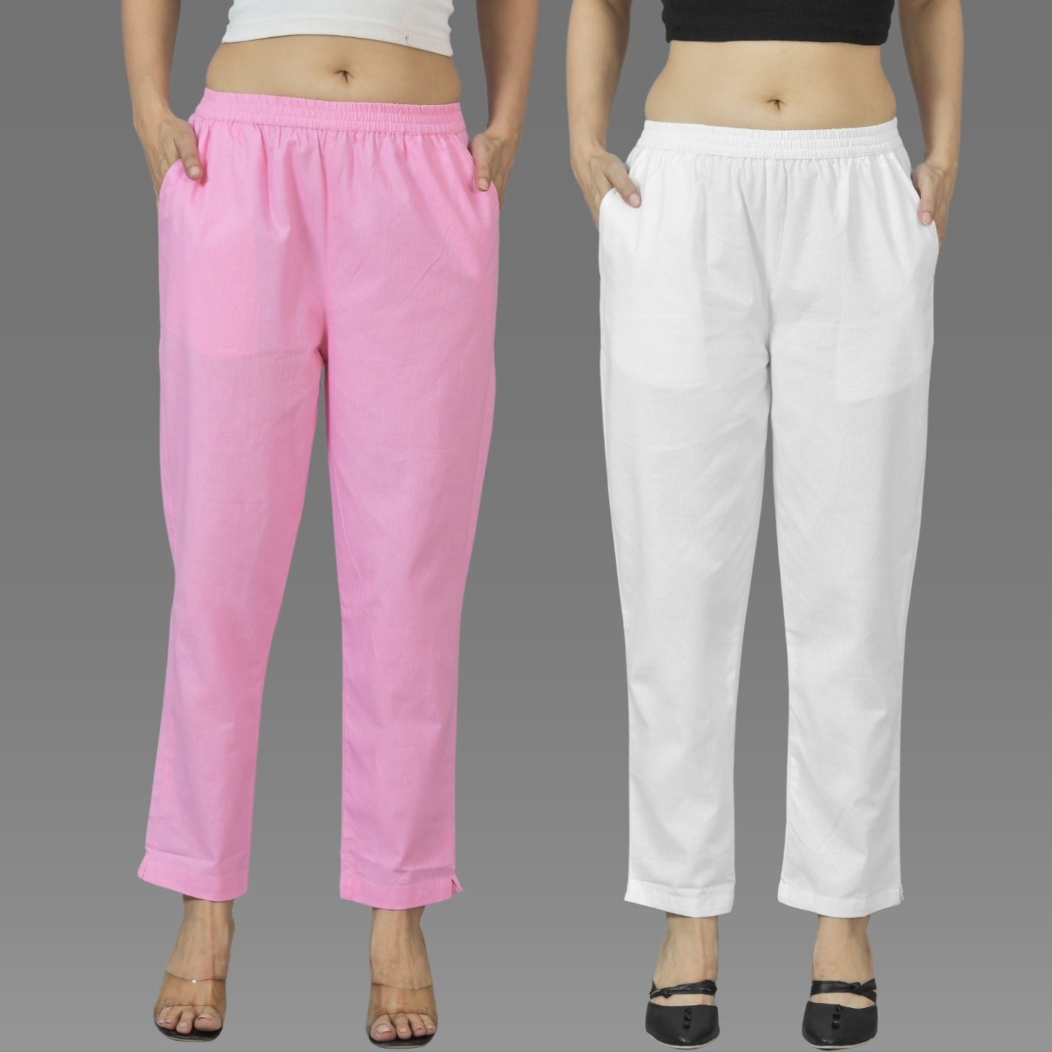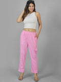 Pack Of 2 Womens Pink And White Deep Pocket Fully Elastic Cotton Trouser