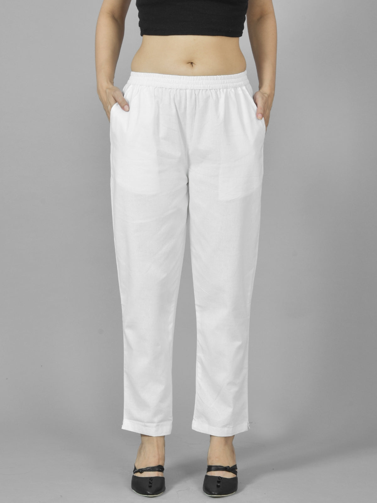 This Pack Of 2 Quaclo Womens Deep Pocket Cotton Trousers Combo is a functional and fashionable addition to your daily outfit. These trousers, which are made from premium cotton flex, provide unmatched comfort and breathability for all-day wear. The fully elastic waistband closure ensures a perfect fit and easy on-and-off, making these trousers a go-to choice for comfort and convenience. These trousers are ideal for business, casual outings, or special occasions thanks to their classic style and flawless fit. The two spacious pockets improve functionality and convenience for your daily activities, and the solid design makes these trousers a long-lasting classic in your wardrobe. With the Klothing Women Two Pocket Pure Cotton Trouser, where comfort and style easily converge, up your fashion game. Two Trousers Are Included In This Pack
