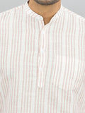 Mens Regular Fit Light Pink Striped Linen Slub Short Kurta
