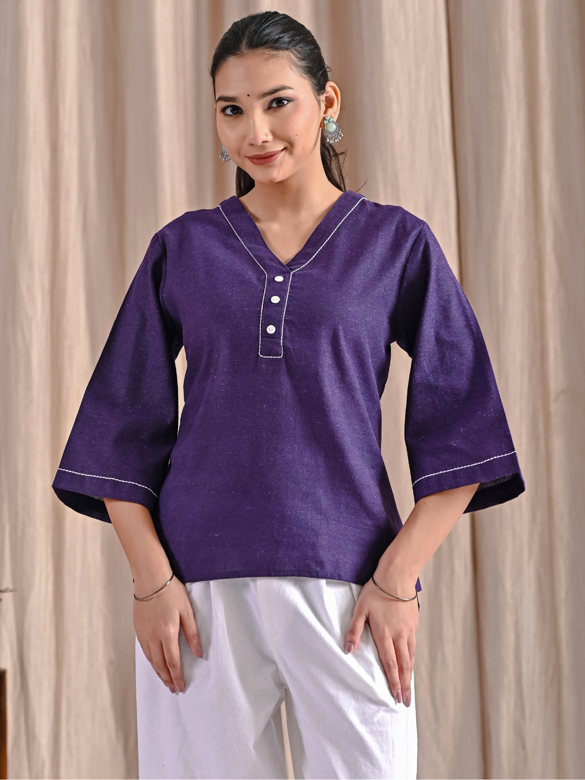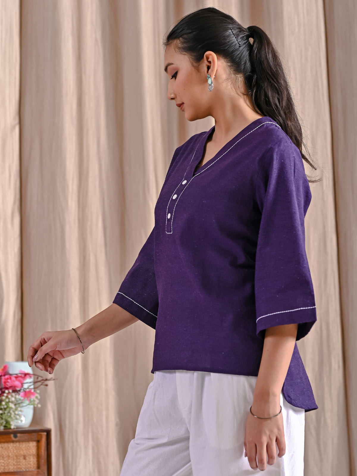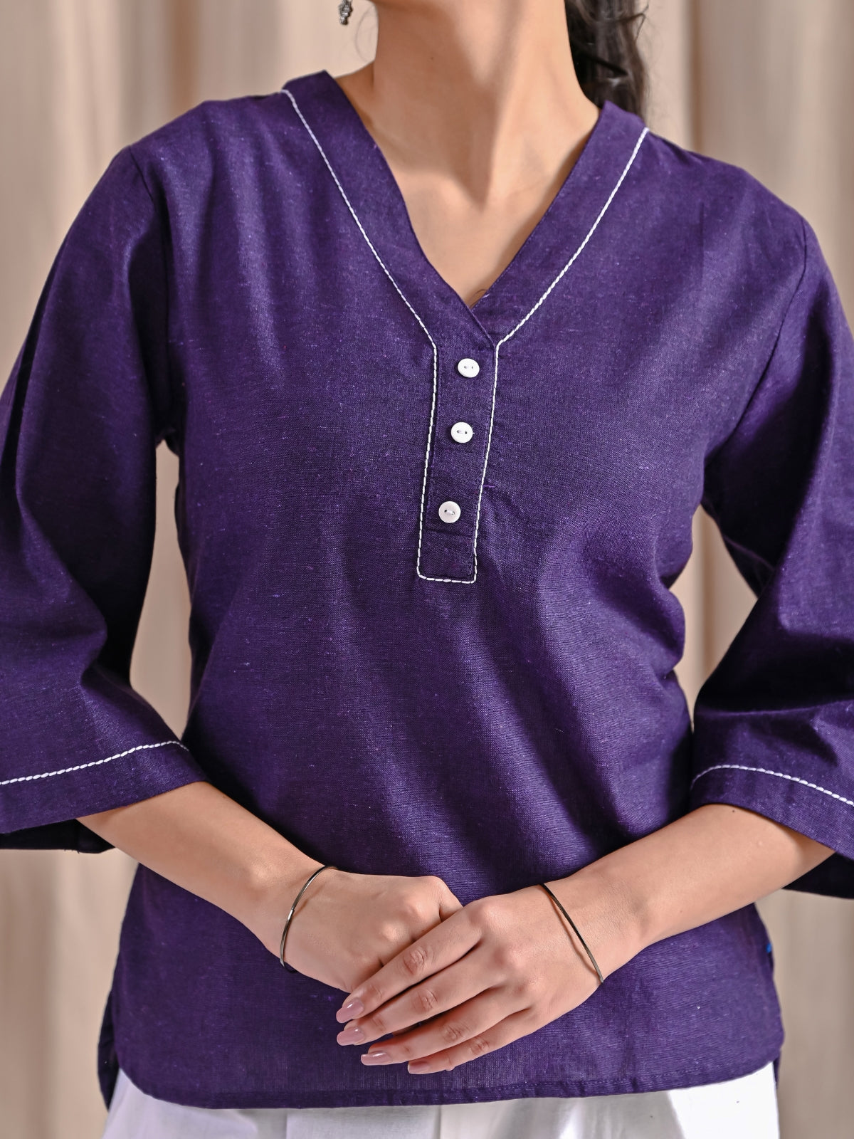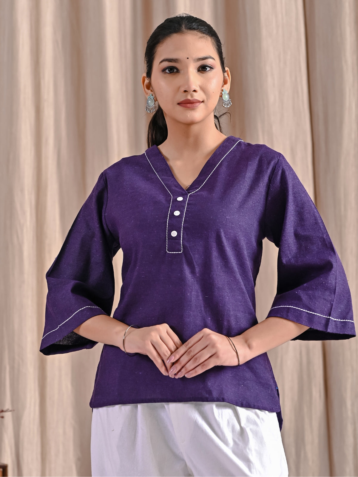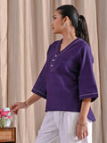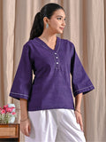 Purple Handloom Cotton Anchor Thread Designer Top