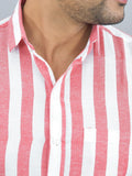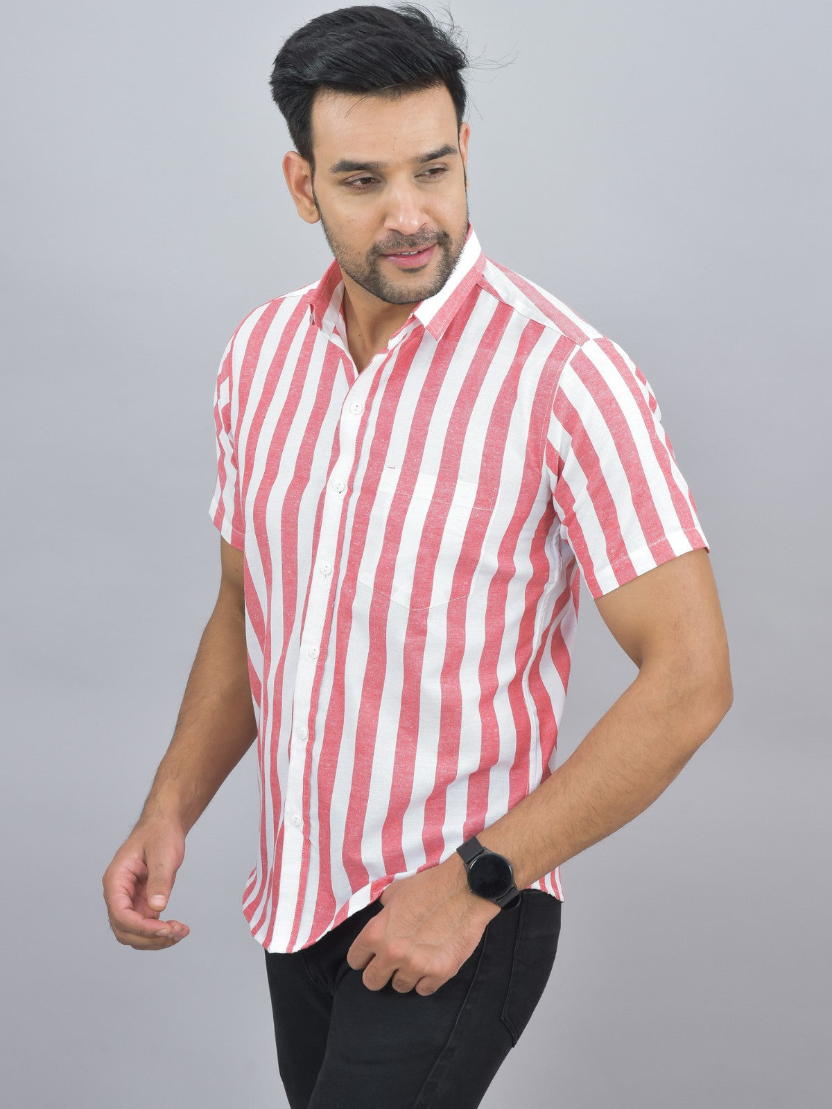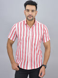 Mens Regular Fit Red Striped Half Sleeves Cotton Casual Shirt