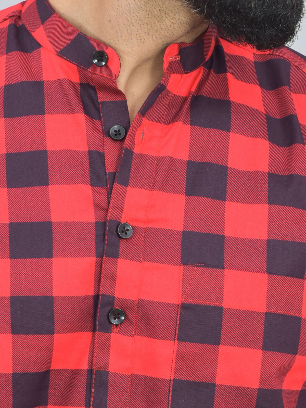 Explore classic fashion with our newest Mens Full Sleeve Short Kurta. This beautifully made kurta with small checks will elevate your wardrobe. The mandarin collar gives an updated touch that strikes the ideal blend between personalised and modern style. This carefully crafted cotton kurta guarantees breathability all day long. In addition to improving functionality, the well-considered addition of a chest pocket gives the entire design a fashionable touch. Enjoy this kurta's versatility as it can be worn to semi-formal and casual events. It becomes a focal point in your collection with the slight flair added by the curved hem. With this essential wardrobe piece, you can up your style bar. Shop now to reinvent your look with our Kurtas, which seamlessly combine style with ease.