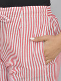 Womens Regular Fit Red Striped South Cotton Trouser