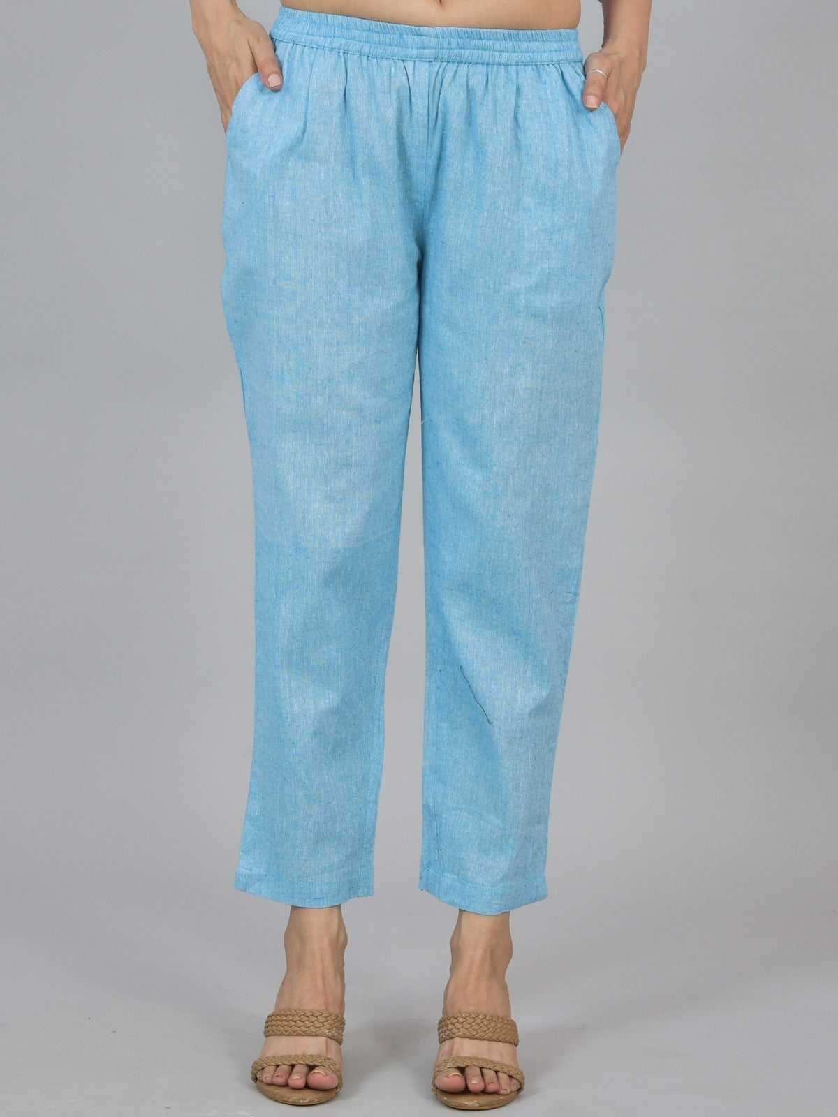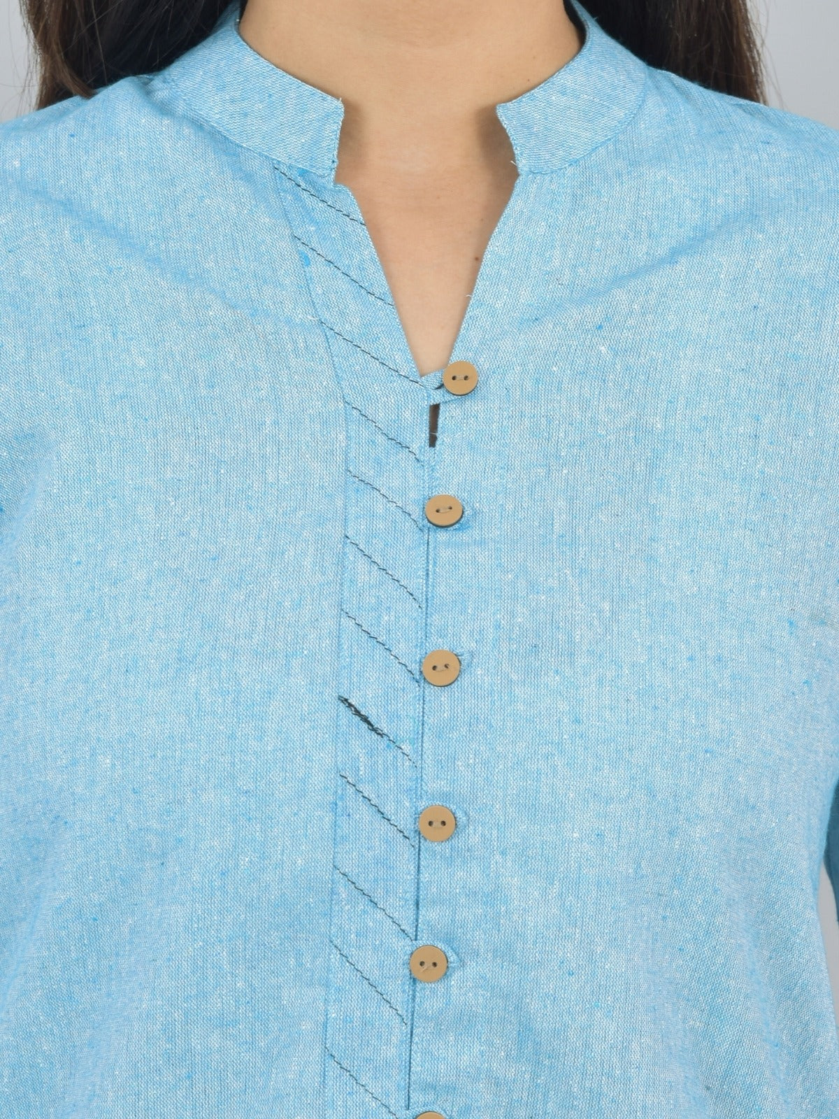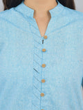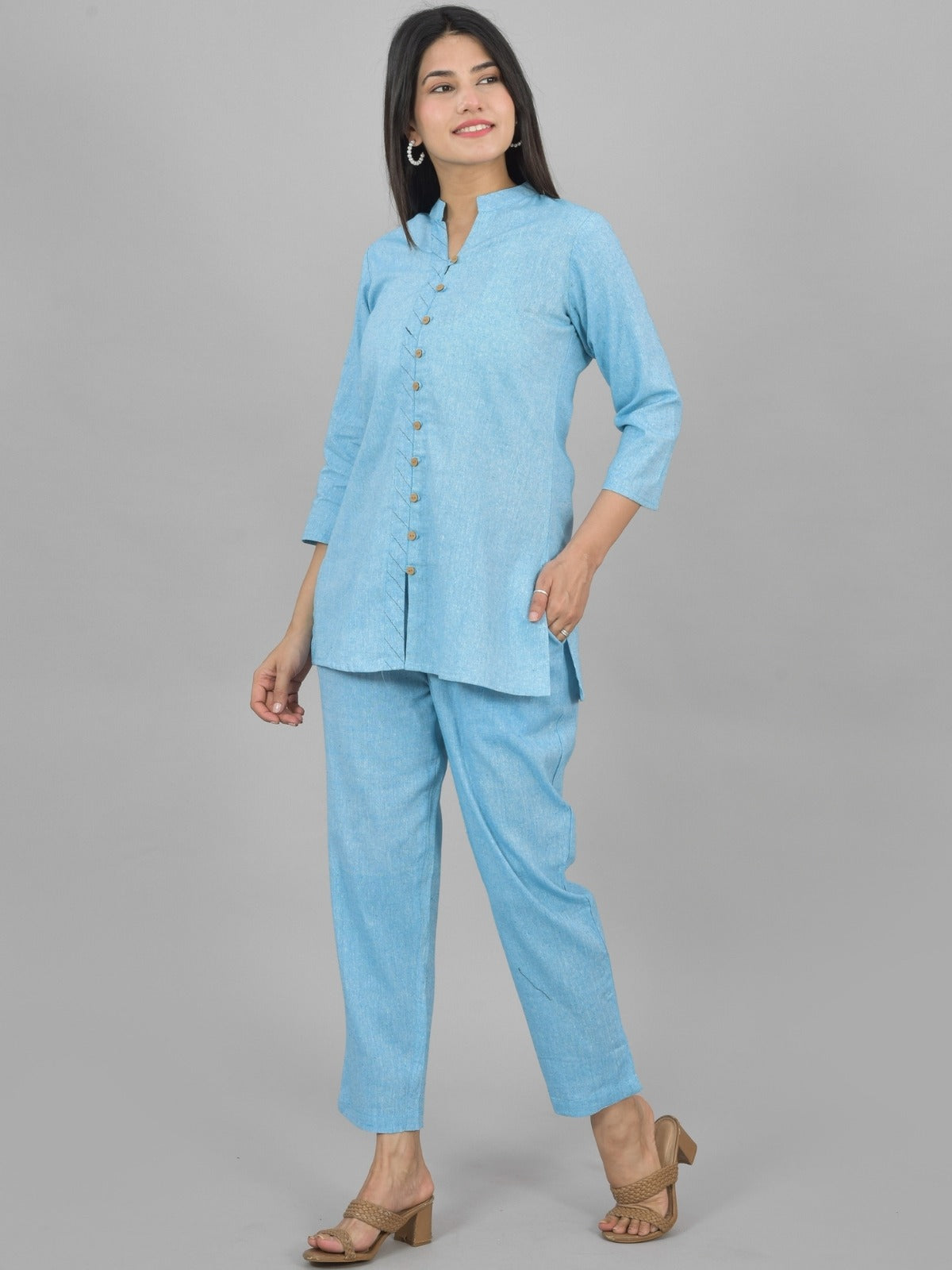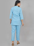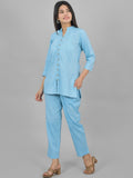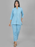 Womens Solid Sky Blue Cotton Top-Pyjama Co-Ords Set
