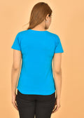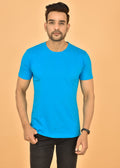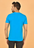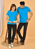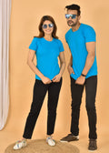 Couple Sky Blue Round Neck Cotton Blend Plain T-shirt Set