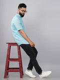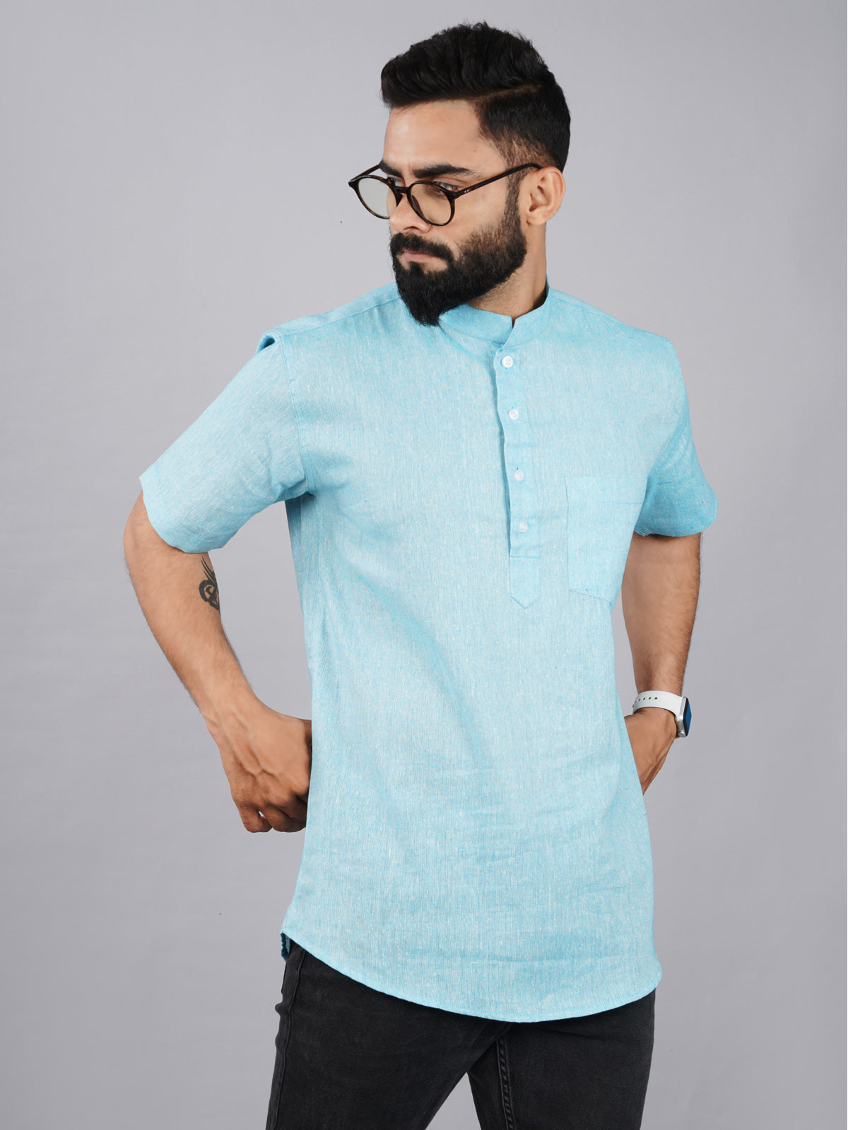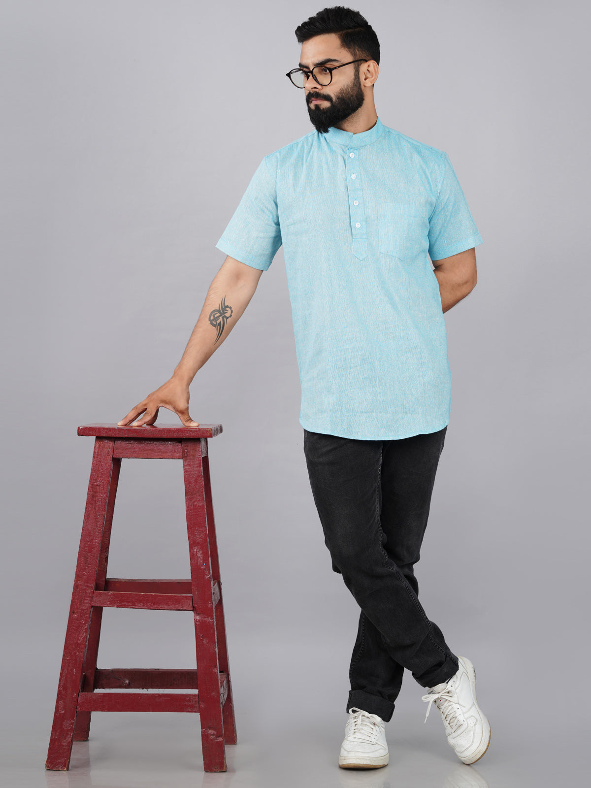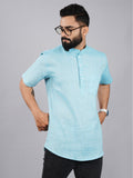Solid Sky Blue Cotton Regular Fit Short Kurta