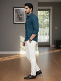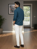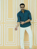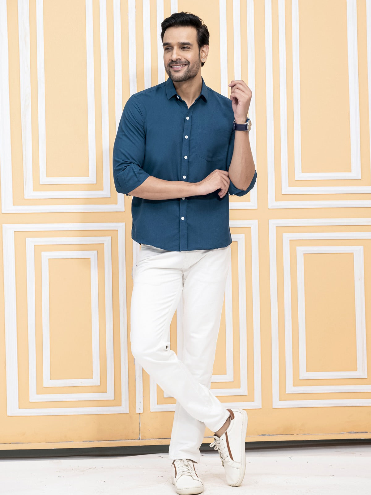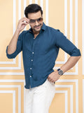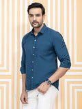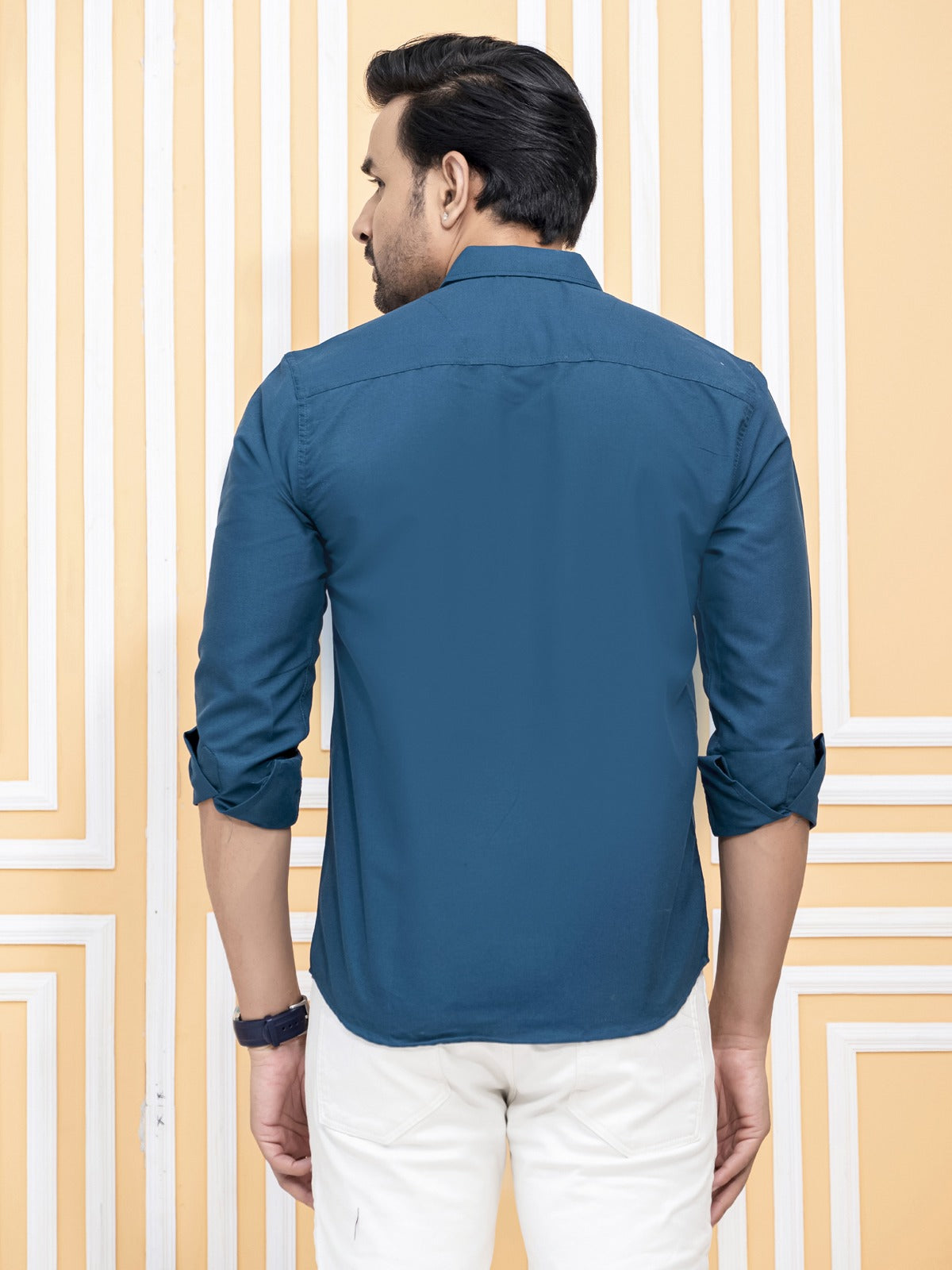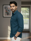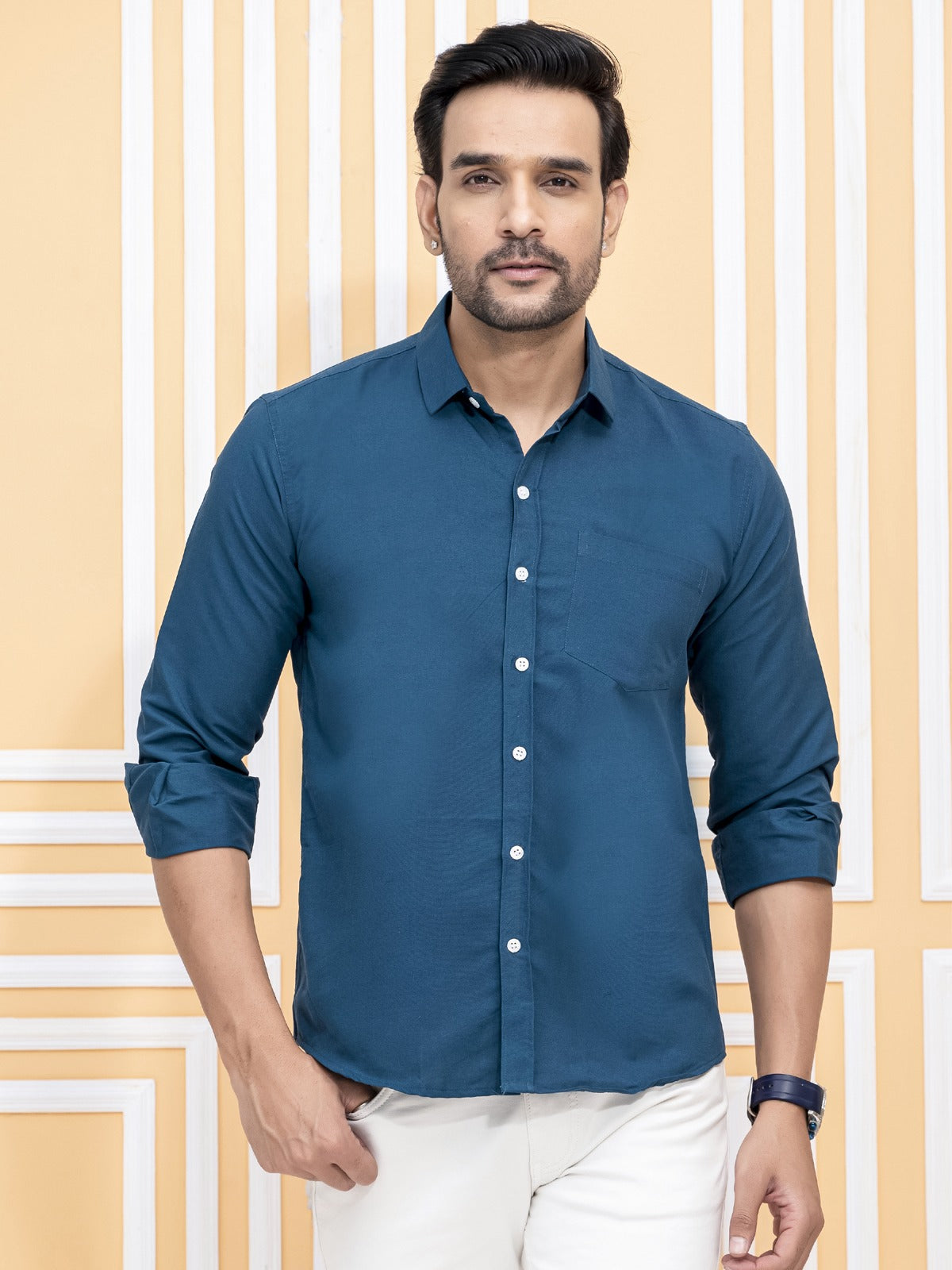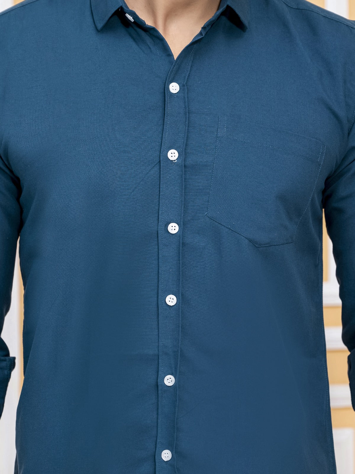 Mens Solid Teal Blue Full Sleeve Cotton Blend Shirt