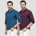 These stylish men's Airy linen shirts Combo with a solid color design will give your outfit a timeless, sophisticated touch. This full-sleeve shirt is perfect for both formal and casual settings because of its durability and all-day comfort. The spread collar adds a sophisticated touch, and the button closure ensures a neat fit. Made from a high-quality linen fabric, this shirt's soft feel and breathability make it ideal for year-round wear. Wear it with pants for a polished office look or jeans for a laid-back weekend outing. This multipurpose shirt is a wardrobe essential for the modern man and is available in a variety of sizes.