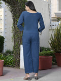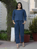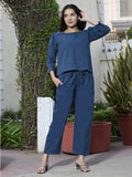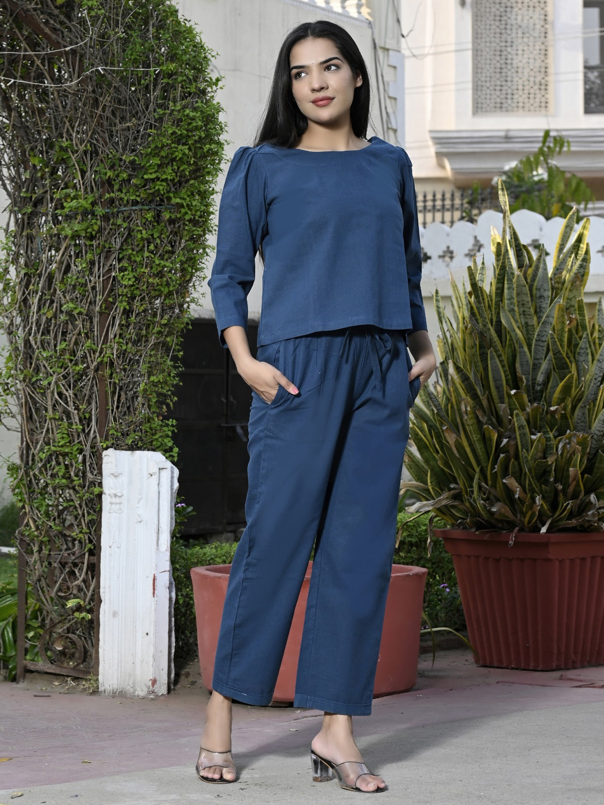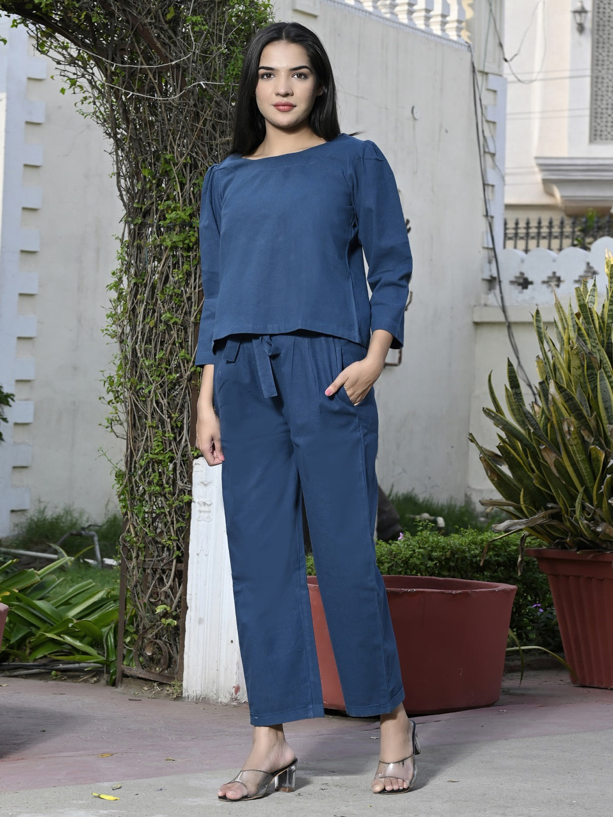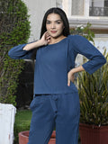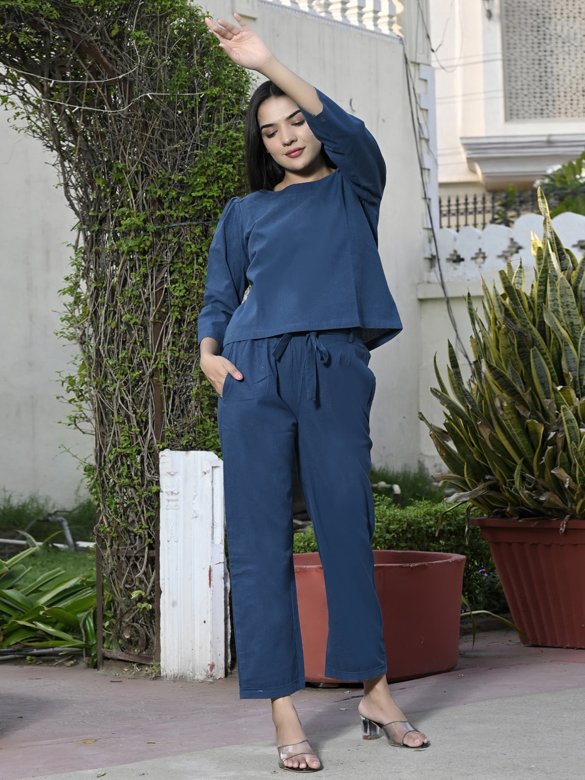 Womens Solid Teal Blue Cotton Top-Pyjama Co-Ords Set