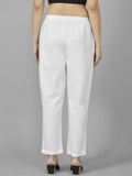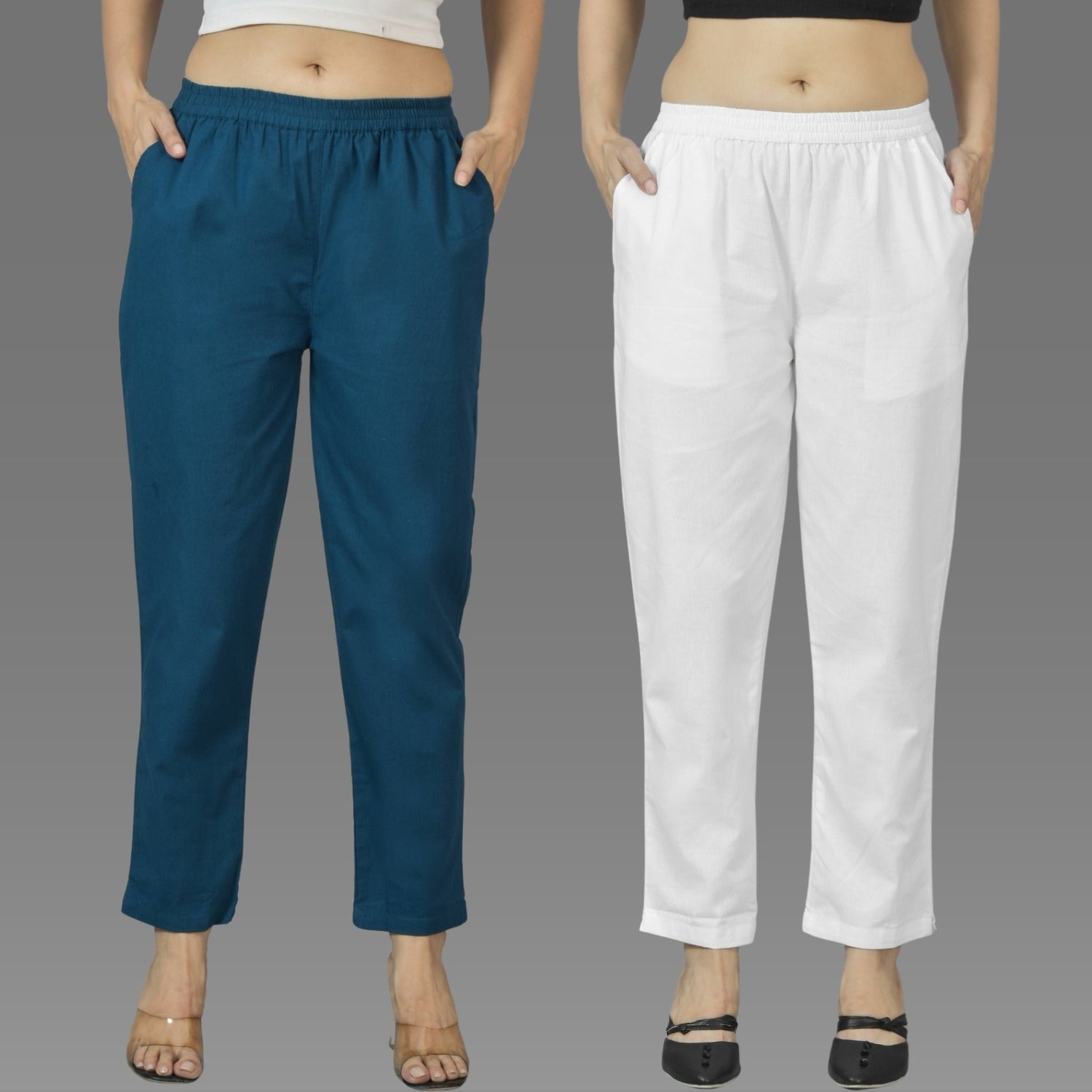 Pack Of 2 Womens Teal Blue And White Deep Pocket Fully Elastic Cotton Trouser