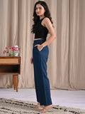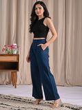 Womens Teal Blue Cotton Wide Leg Pants