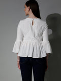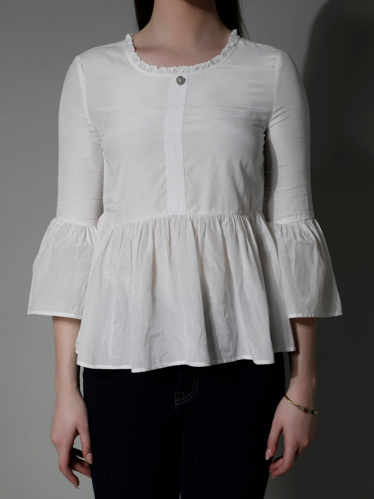 Made from fine quality silk and cotton fibres, this blouse features a cinched in waist with playful gatherings and relaxed fit. ERATO, an exquisite collection piece, having brooch button and soft cotton lining at front & back.