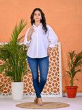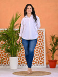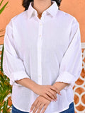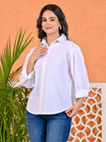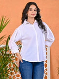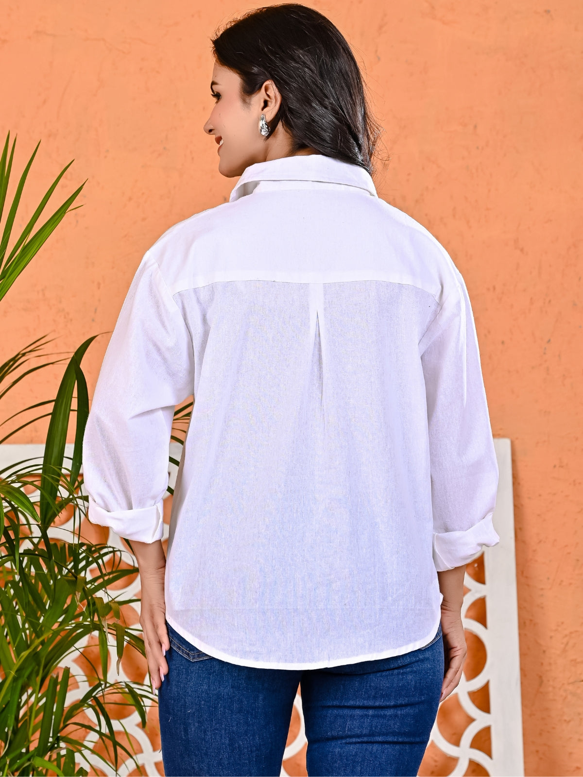 This women's loose-fitting cotton shirt, which can be used to formal events as well as casual settings, will add flair to your wardrobe. This shirt's soft, breathable cotton design guarantees all-day comfort without compromising style. It combines classic style with everyday ease thanks to its full sleeves, button-down closure, and classic spread collar. All body shapes benefit from its easy movement and relaxed fit, which makes it ideal for arranging in any season or for the workplace or weekend tours. Wear it with pants for a dressier look or jeans for a more relaxed vibe. Any modern woman's wardrobe must include this adaptable button-up cotton shirt. Easy to maintain and perfect for year-round wear.