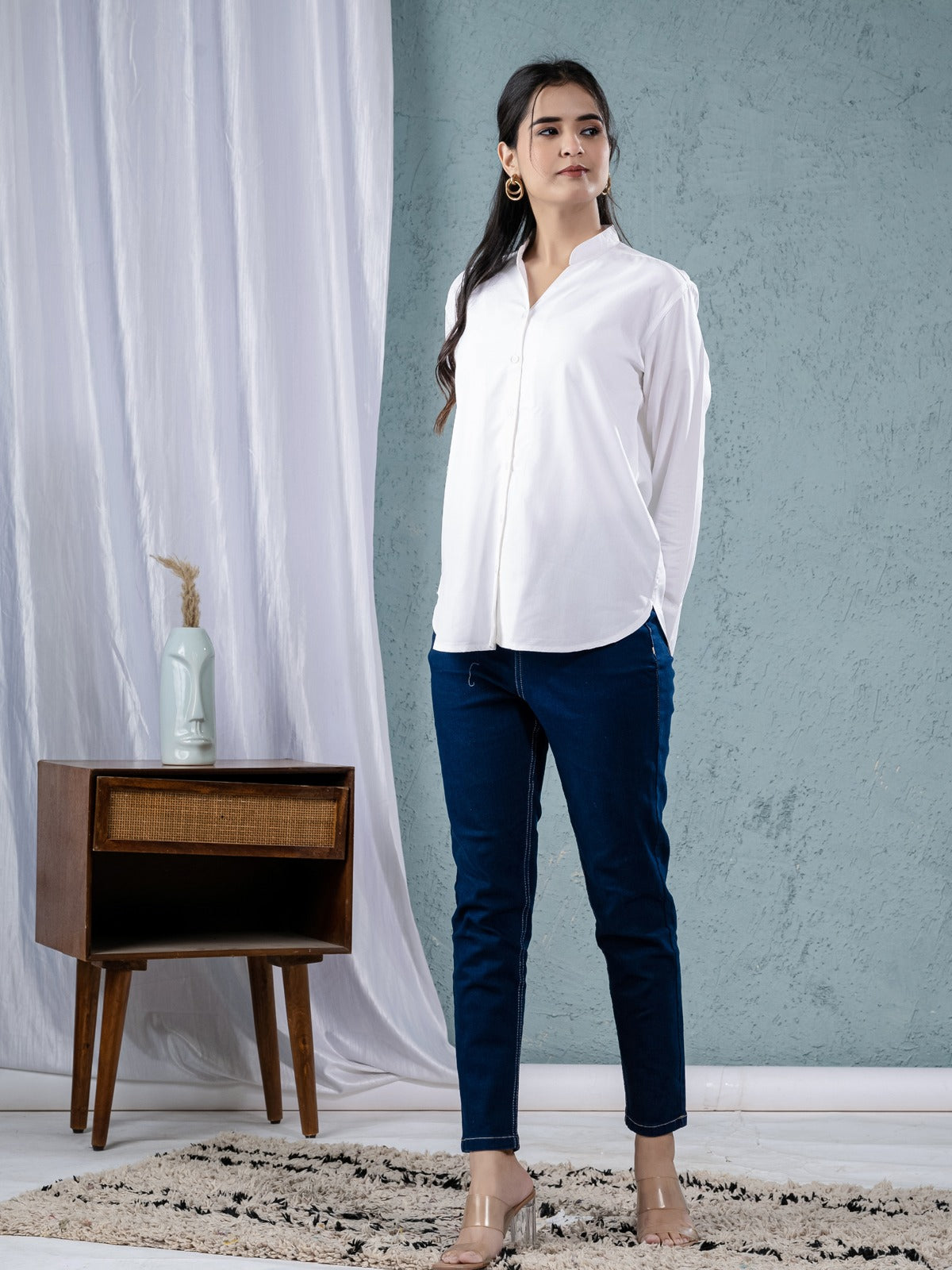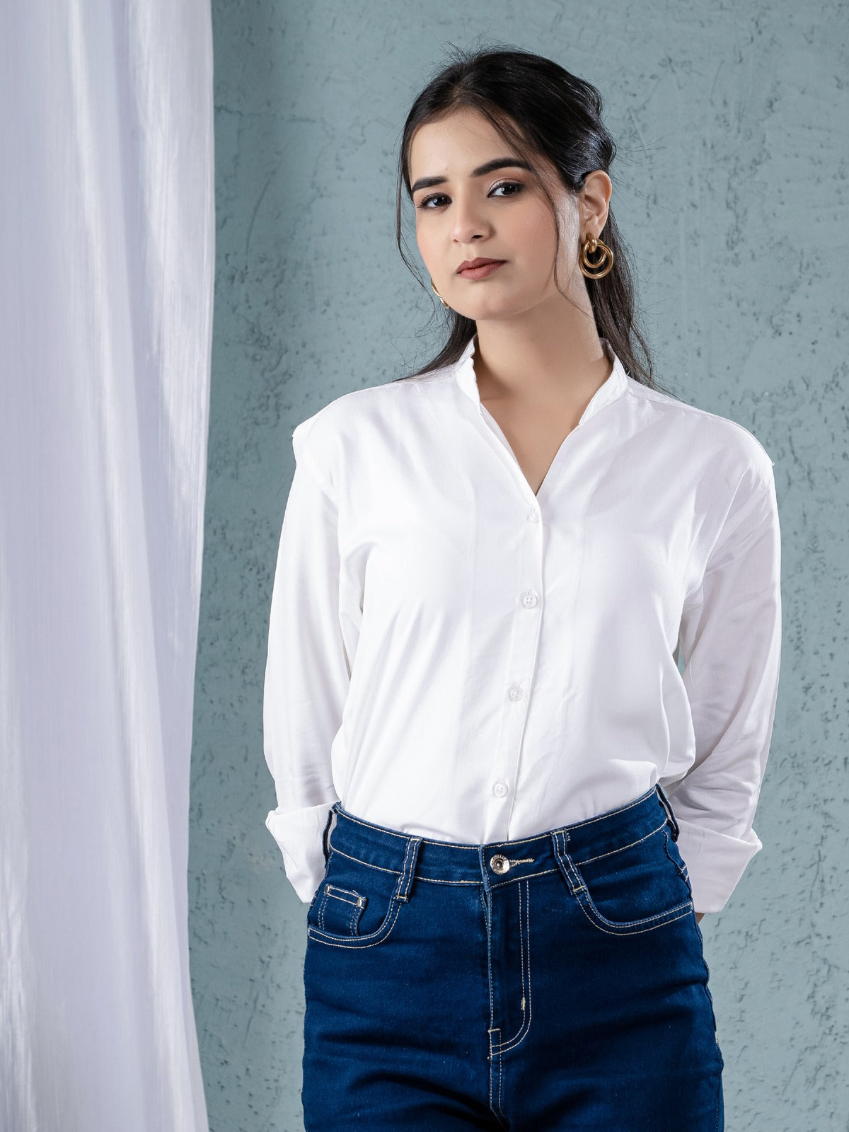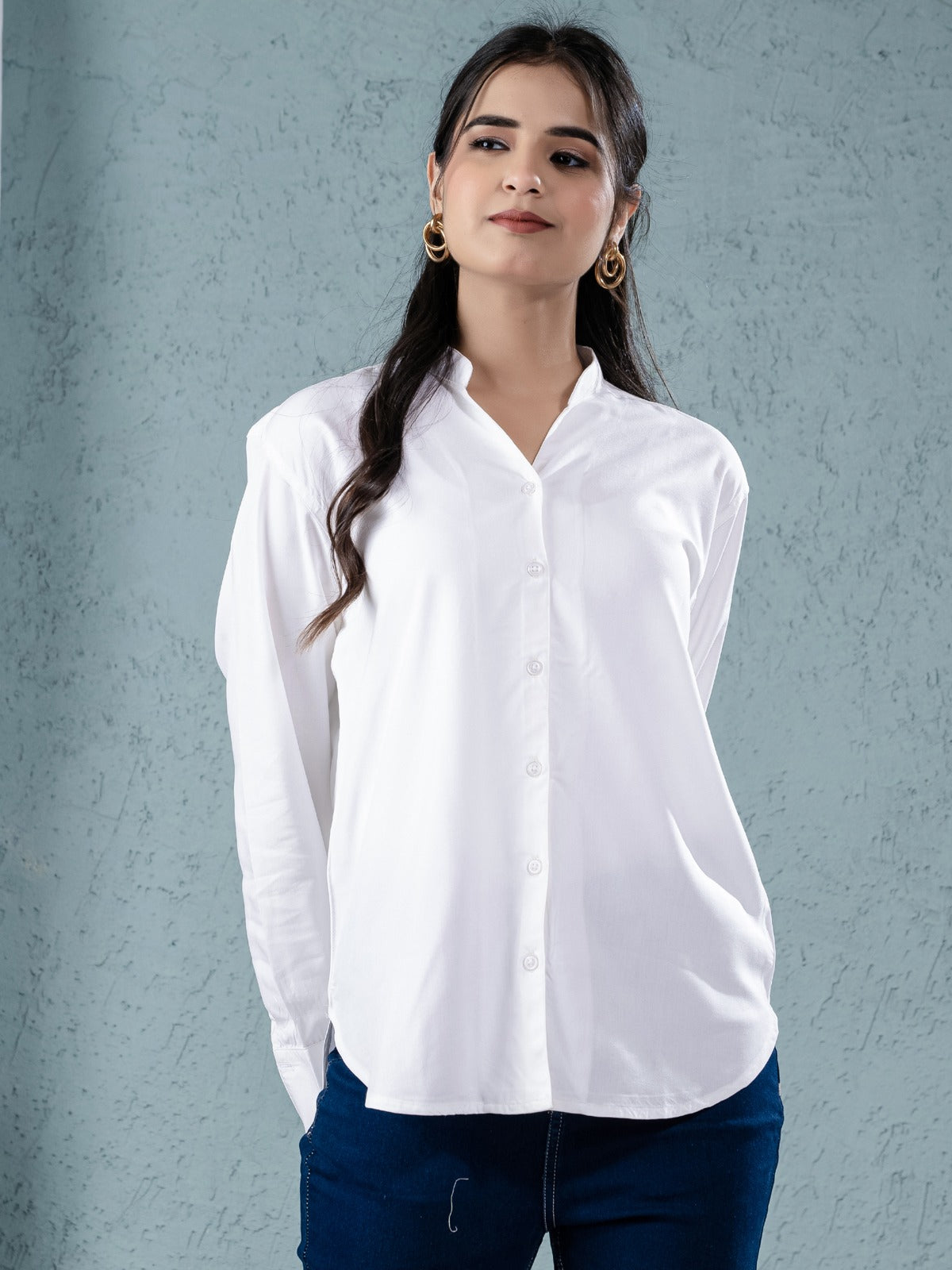 Are you trying to find a comfortable and fashionable women's shirt? For any occasion, our solid viscose rayon shirts are ideal! This shirt's full sleeves, V-shaped Mandarin collar neck, and hip-length cut give it a stylish and contemporary appearance. The soft viscose fabric offers breathability and comfort all day long, and the button closure guarantees a snug and well-fitting fit. This flexible item goes well with jeans, pants, or skirts and is perfect for evening events, office wear, and casual outings. This classic and sophisticated shirt, which comes in a variety of colors, will add flair to your outfit. Get a stylish and cozy fashion upgrade right now. Ideal for every season!