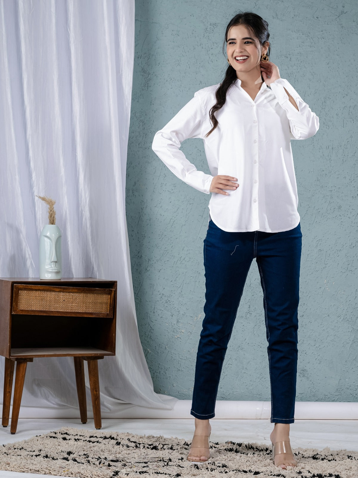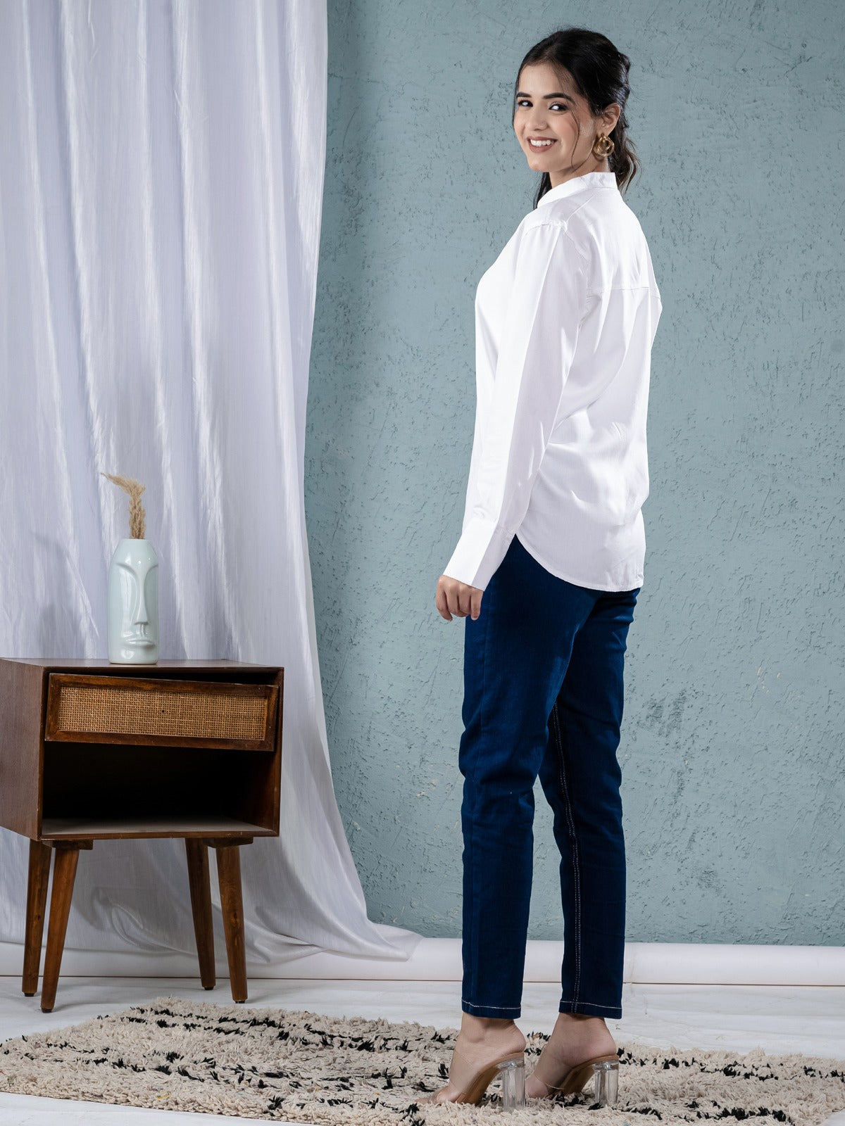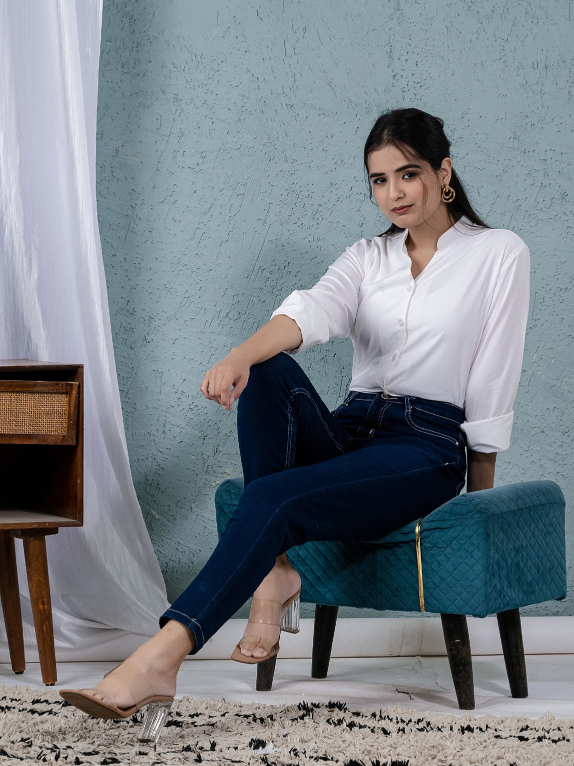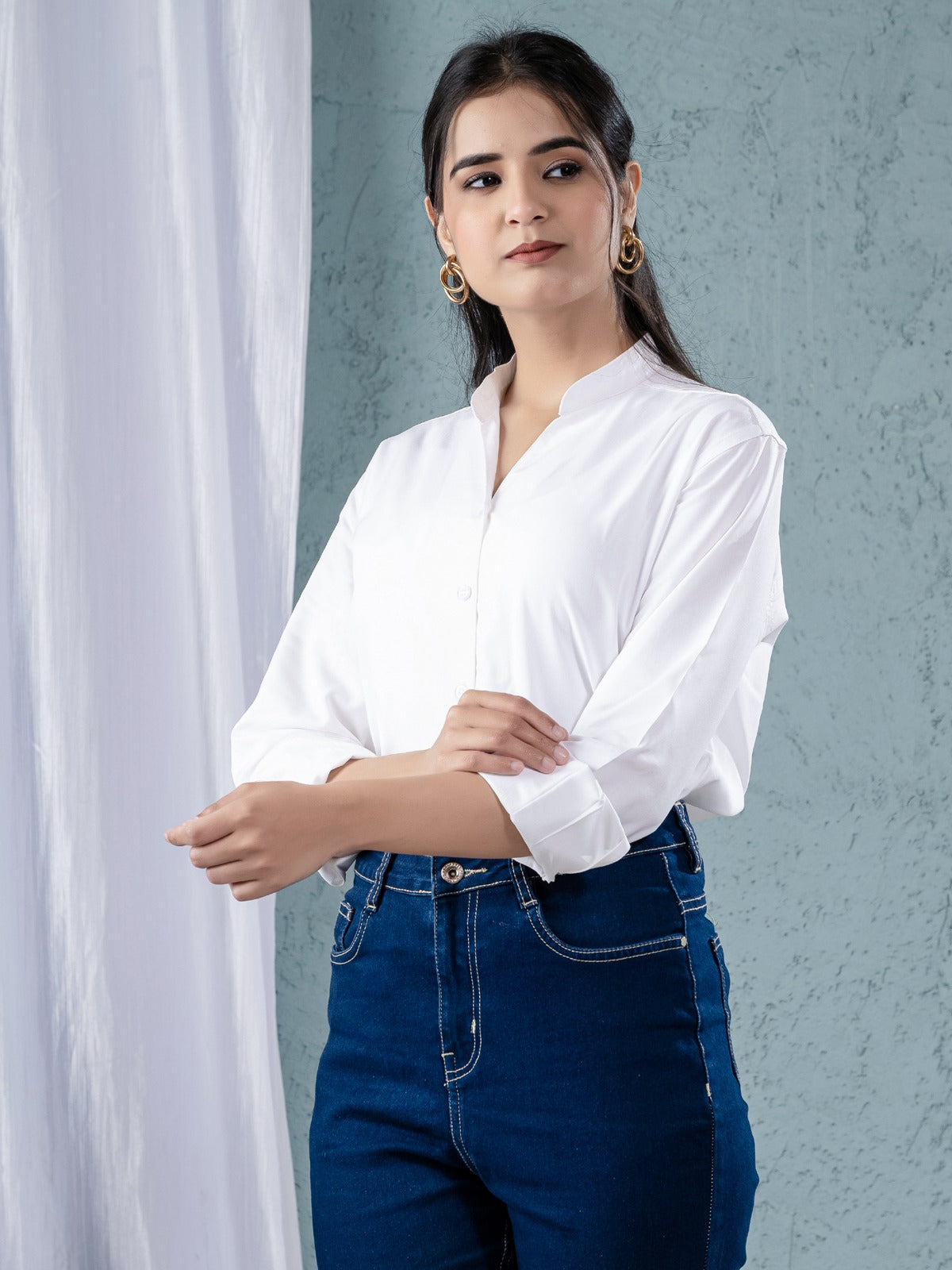 Are you trying to find a comfortable and fashionable women's shirt? For any occasion, our solid viscose rayon shirts are ideal! This shirt's full sleeves, V-shaped Mandarin collar neck, and hip-length cut give it a stylish and contemporary appearance. The soft viscose fabric offers breathability and comfort all day long, and the button closure guarantees a snug and well-fitting fit. This flexible item goes well with jeans, pants, or skirts and is perfect for evening events, office wear, and casual outings. This classic and sophisticated shirt, which comes in a variety of colors, will add flair to your outfit. Get a stylish and cozy fashion upgrade right now. Ideal for every season!