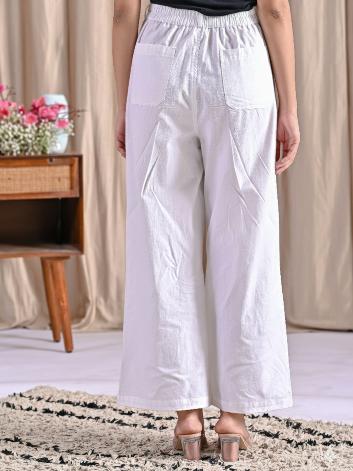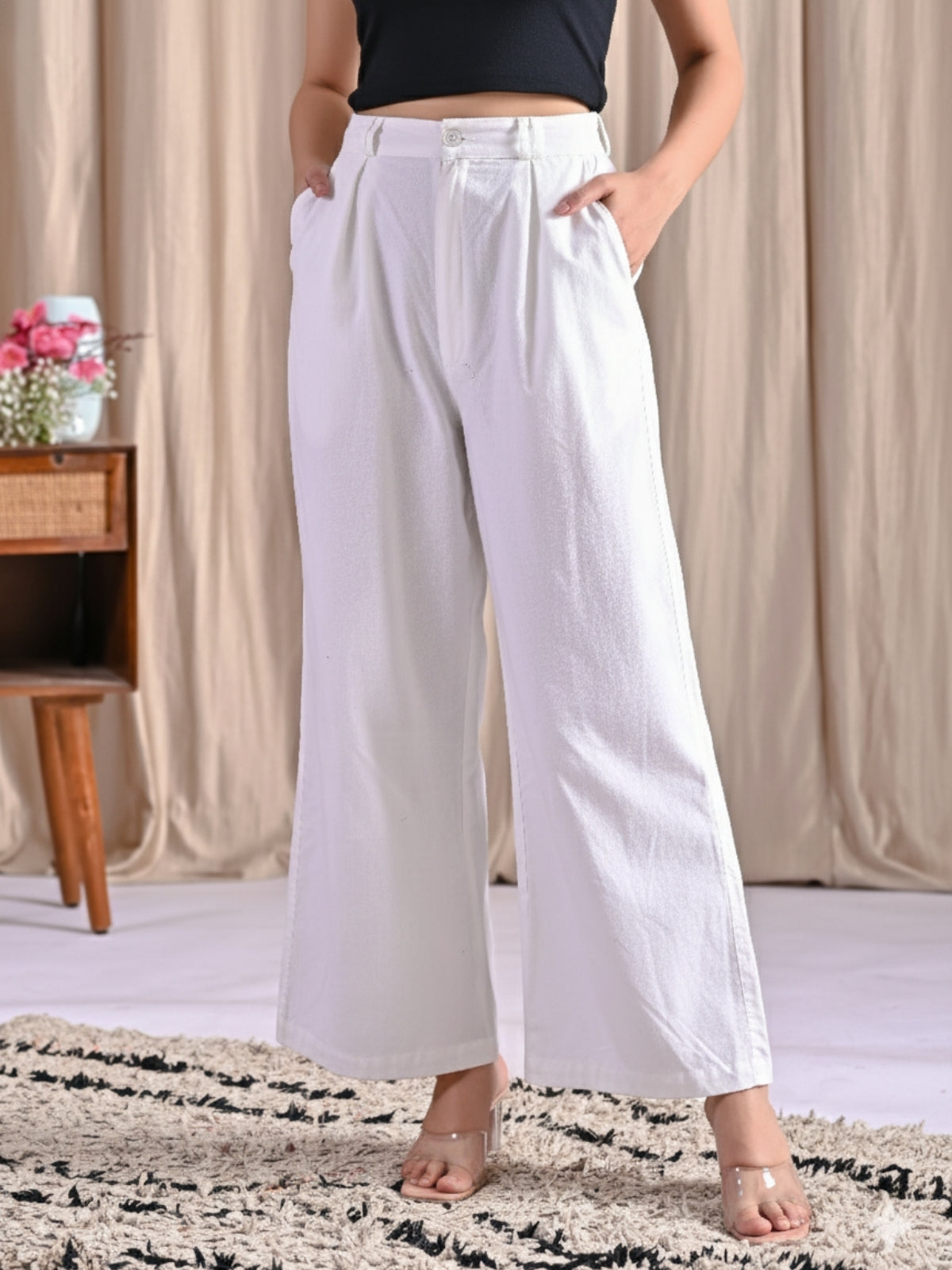 Effortless Style Meets Comfort: These wide-bottom cotton pants are your all-season essential. Featuring a flattering pleated design and a comfortable cotton fit, they offer a stylish and fashionable look perfect for any day.