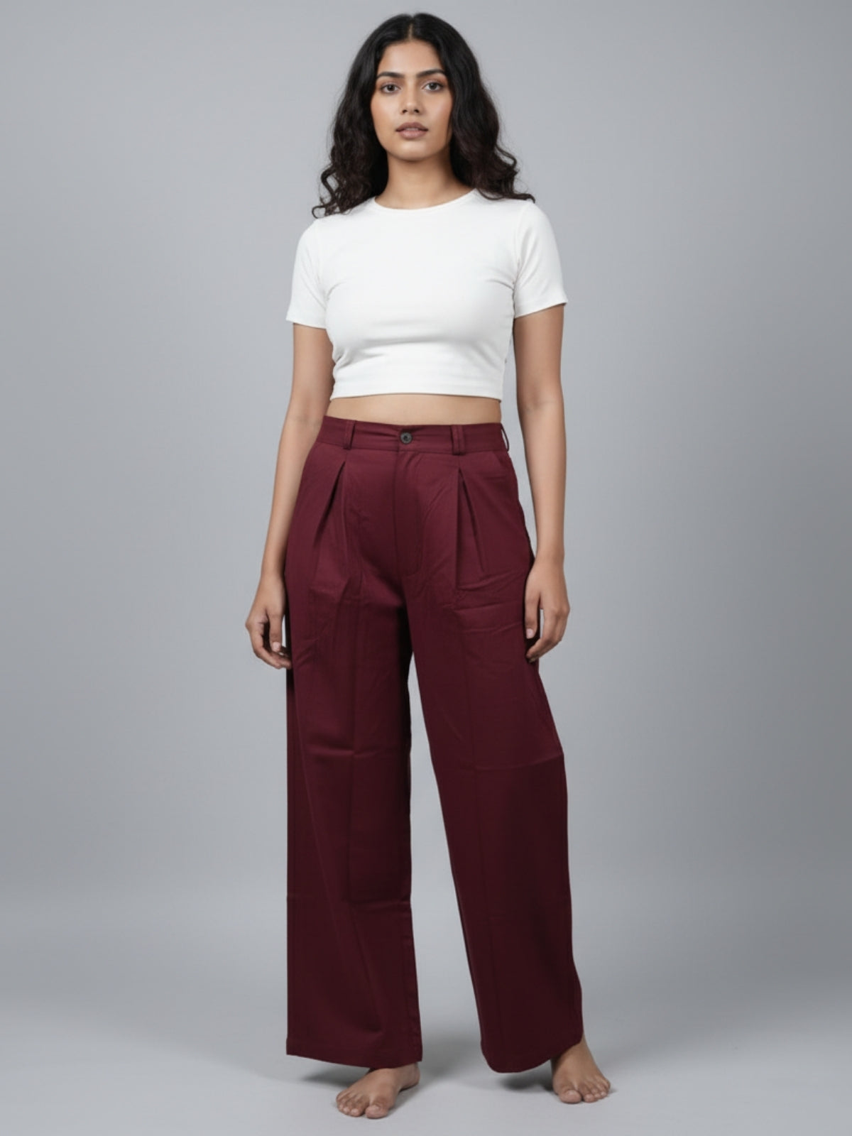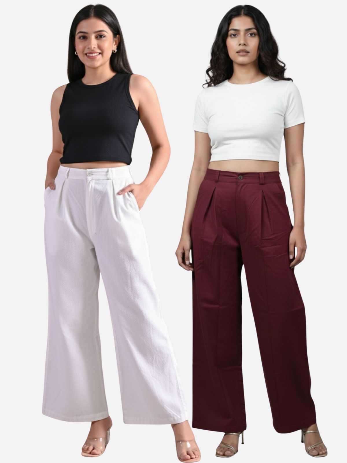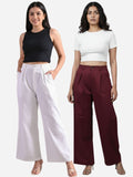 Pack Of 2 White And Wine Women Cotton Wide Leg Pants
