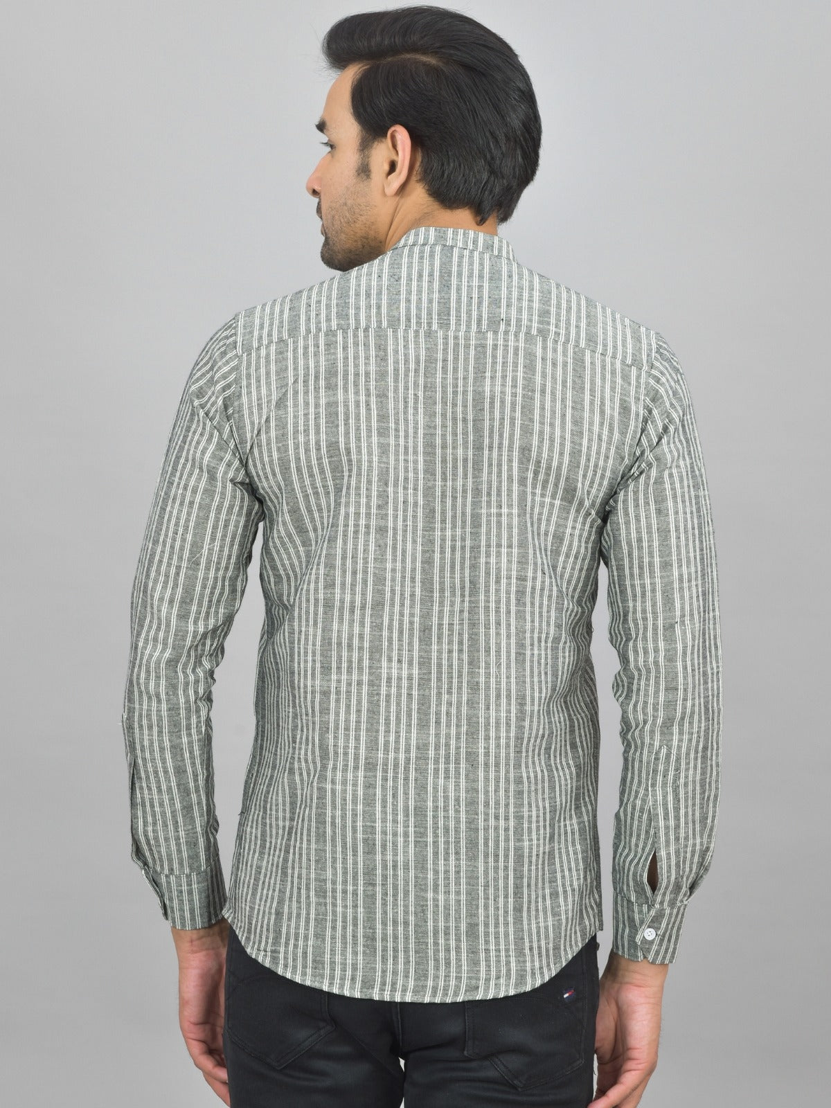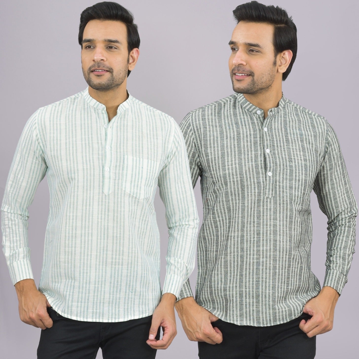 Pack Of 2 Mens Brown And Grey Stripe Linen Slub Short Kurta