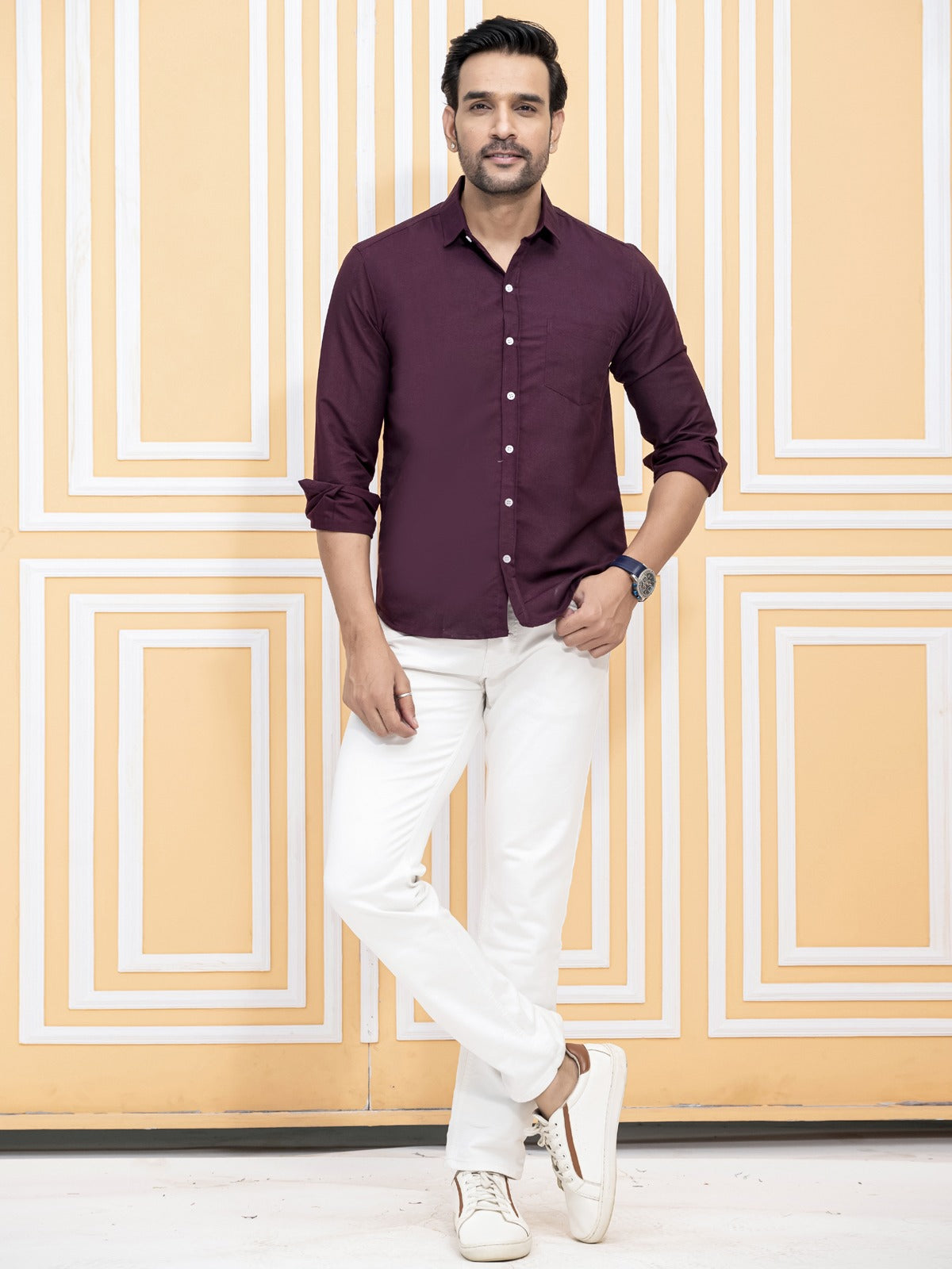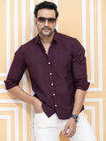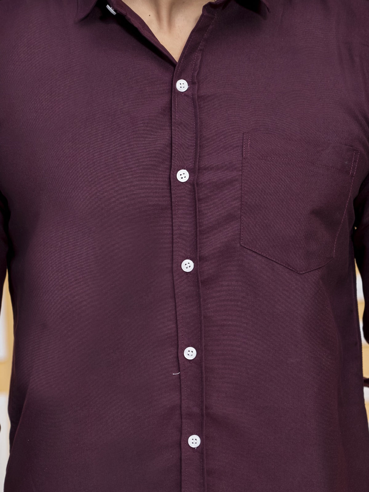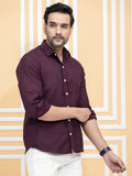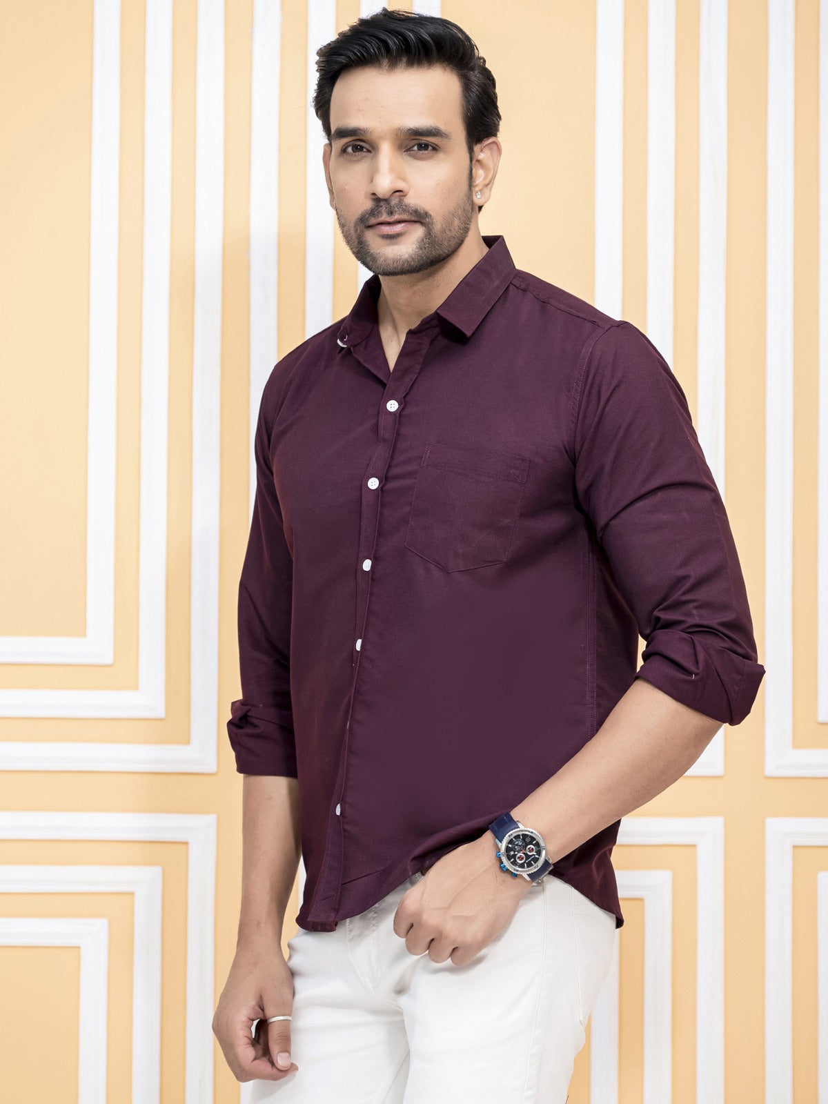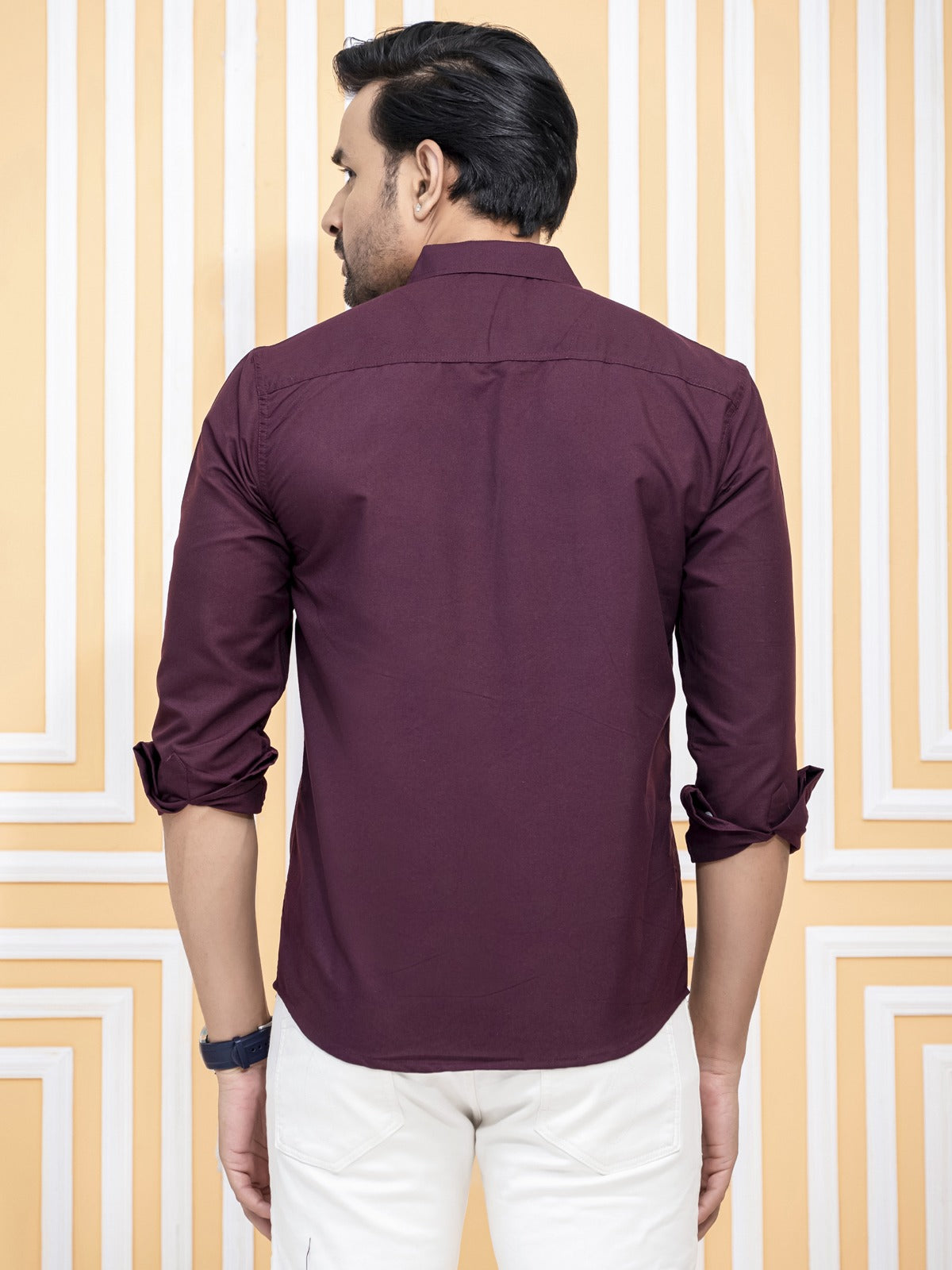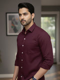 Mens Solid Wine Full Sleeve Cotton Blend Shirt