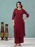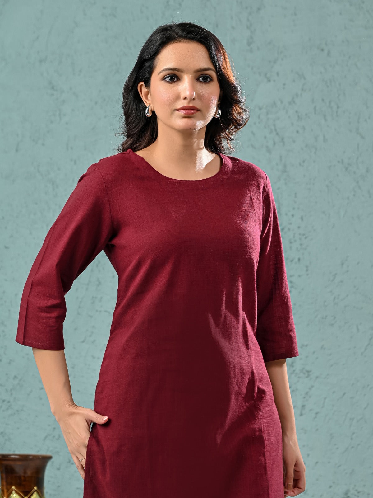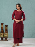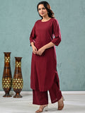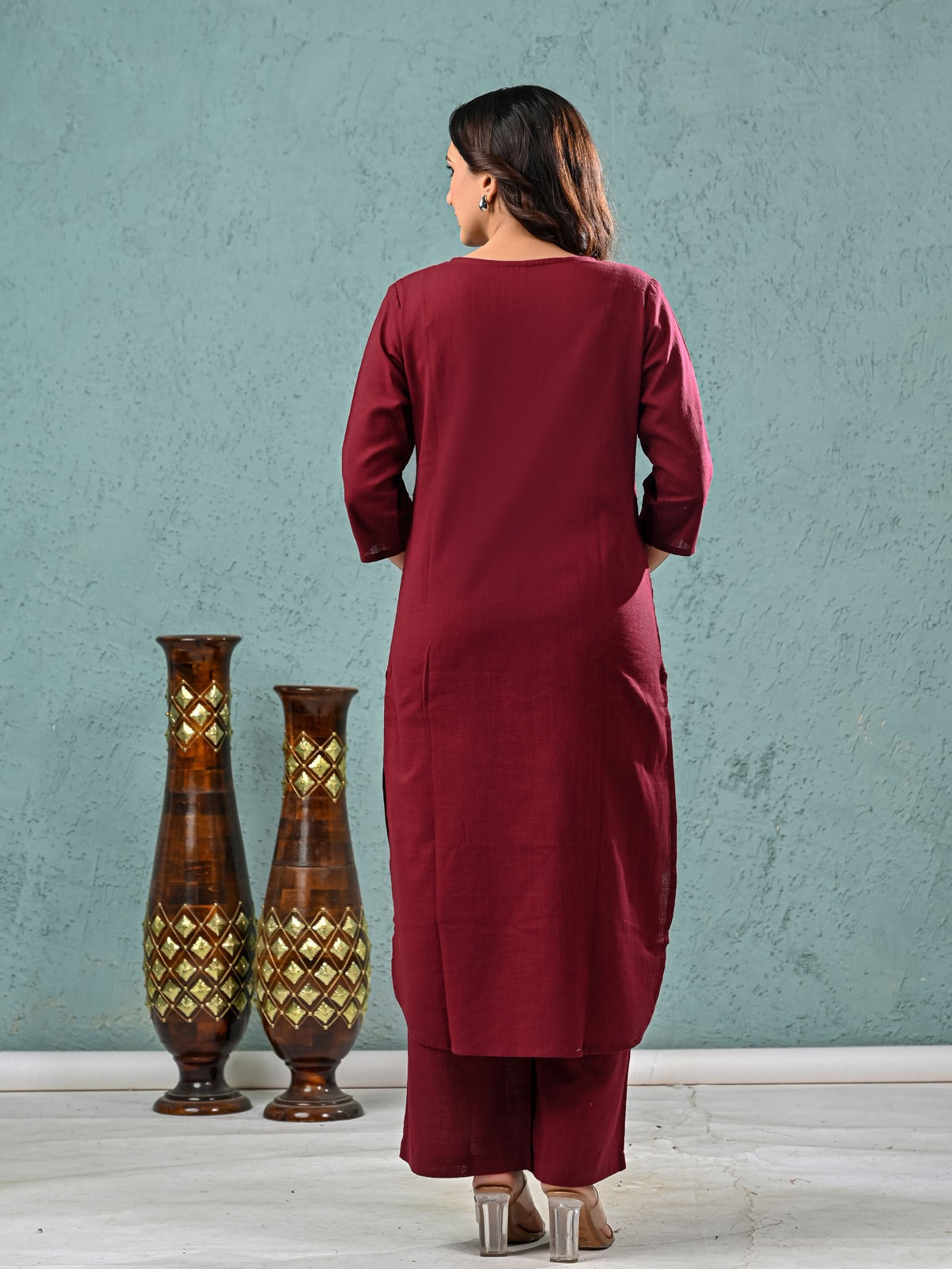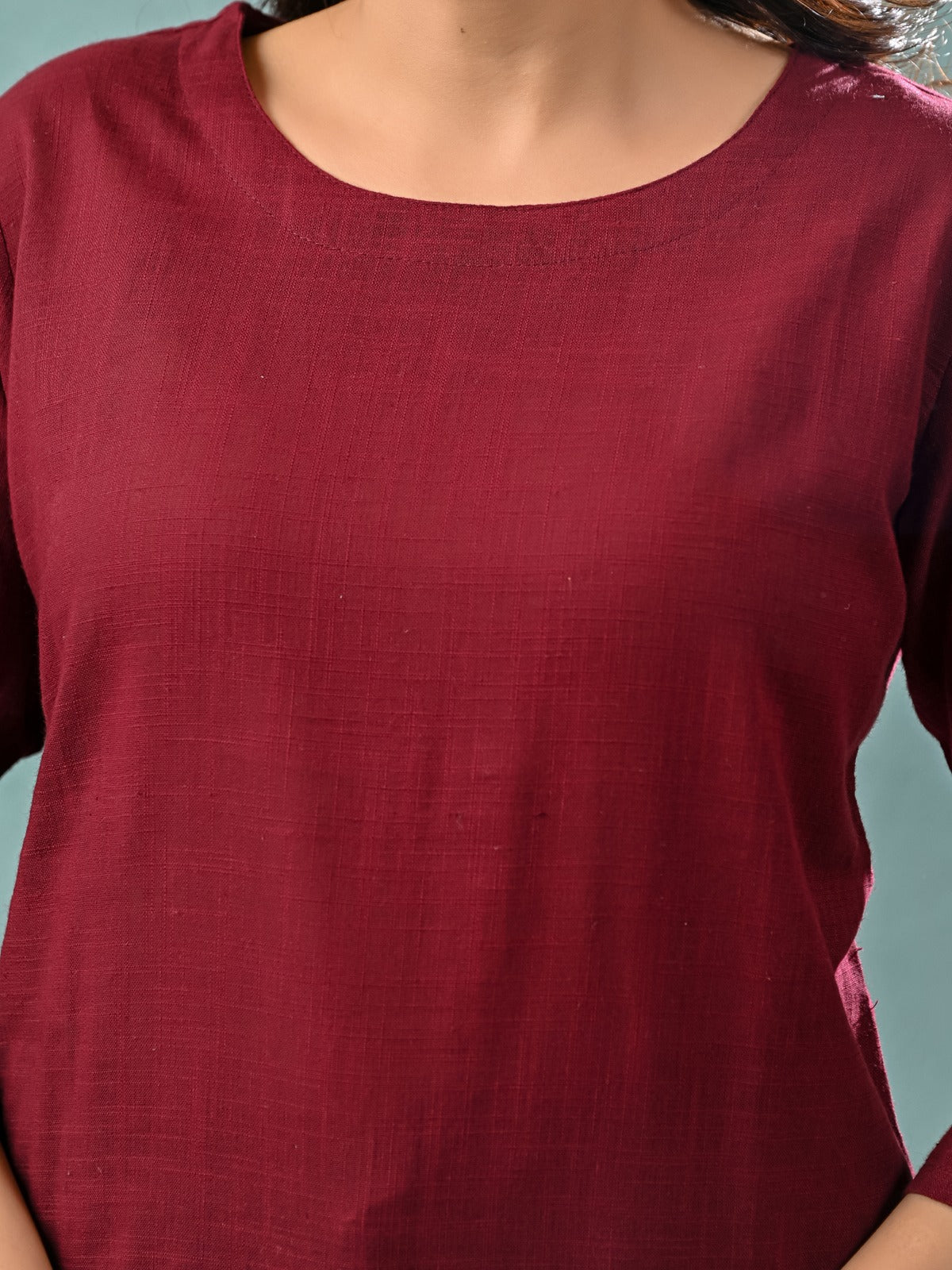 Womens Solid Wine Cotton Kurta Plazzo Set