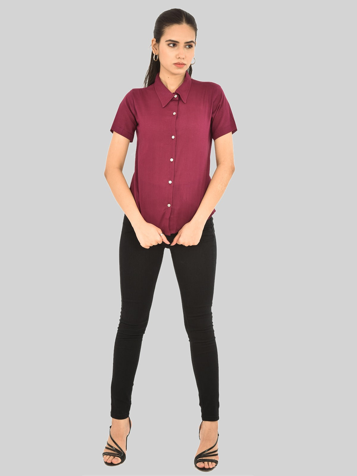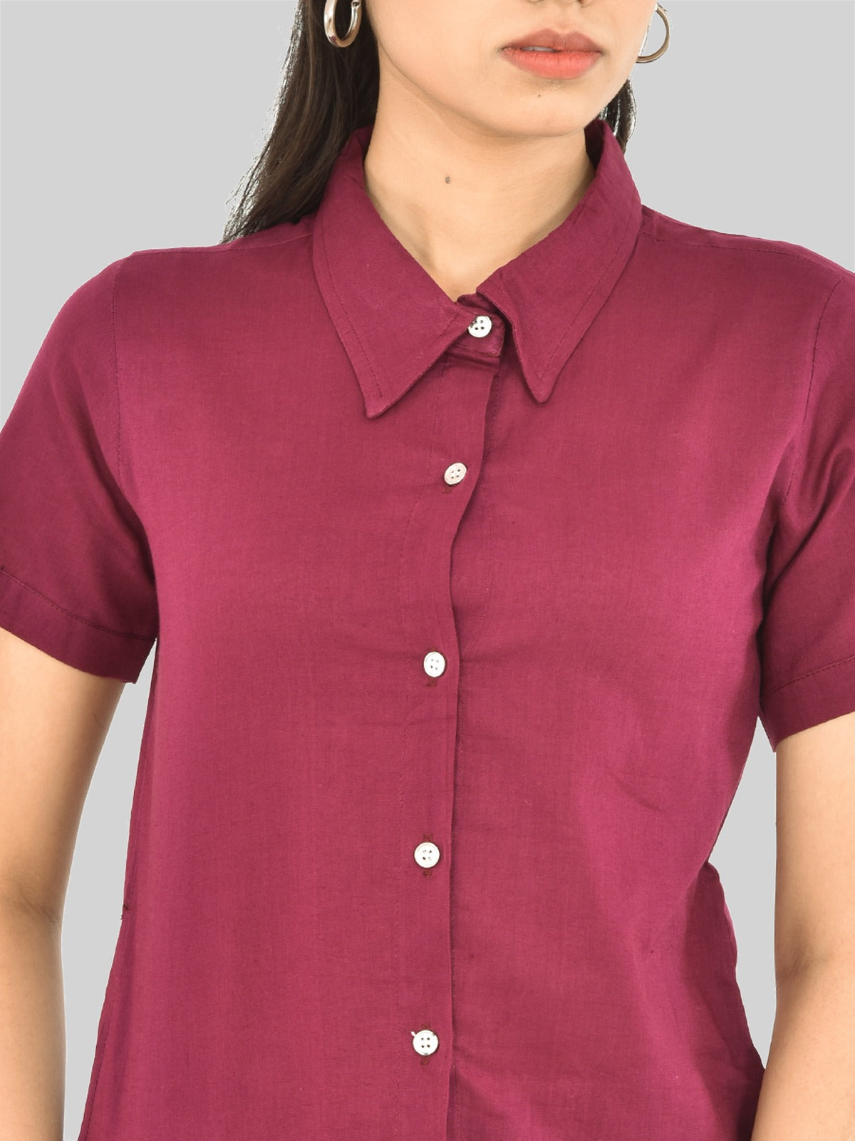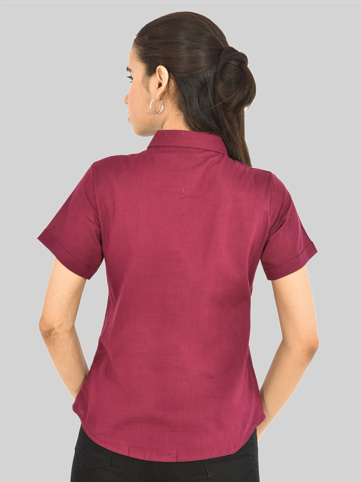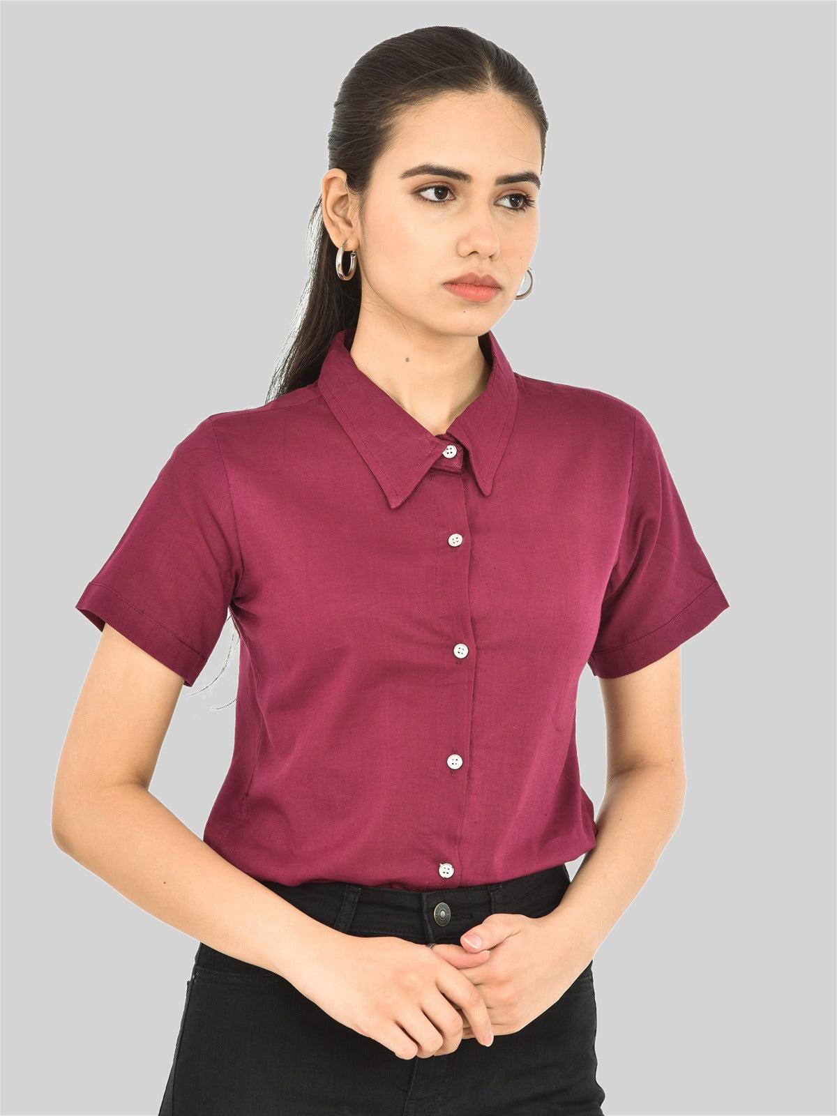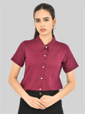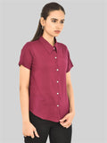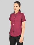 Womens Regular Fit Wine Half Sleeve Cotton Shirt