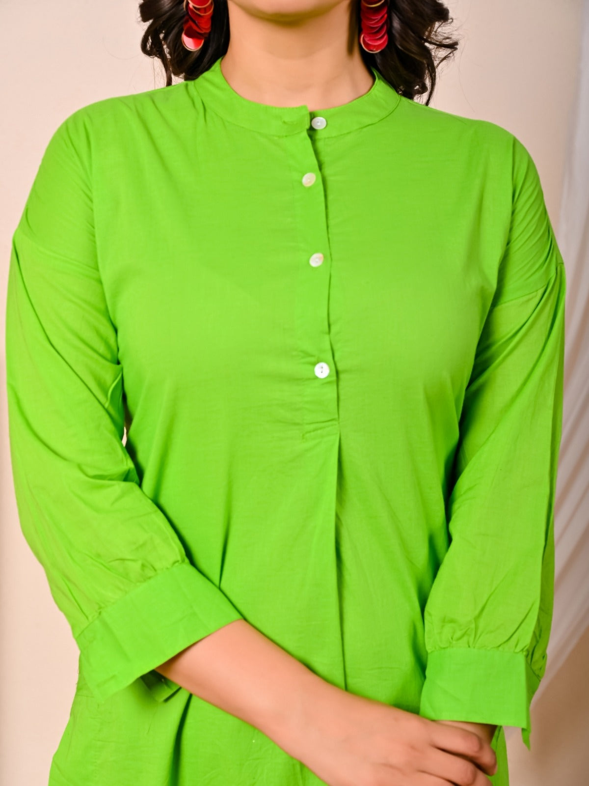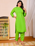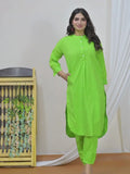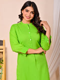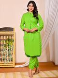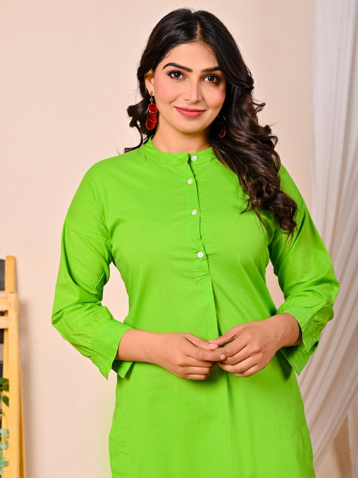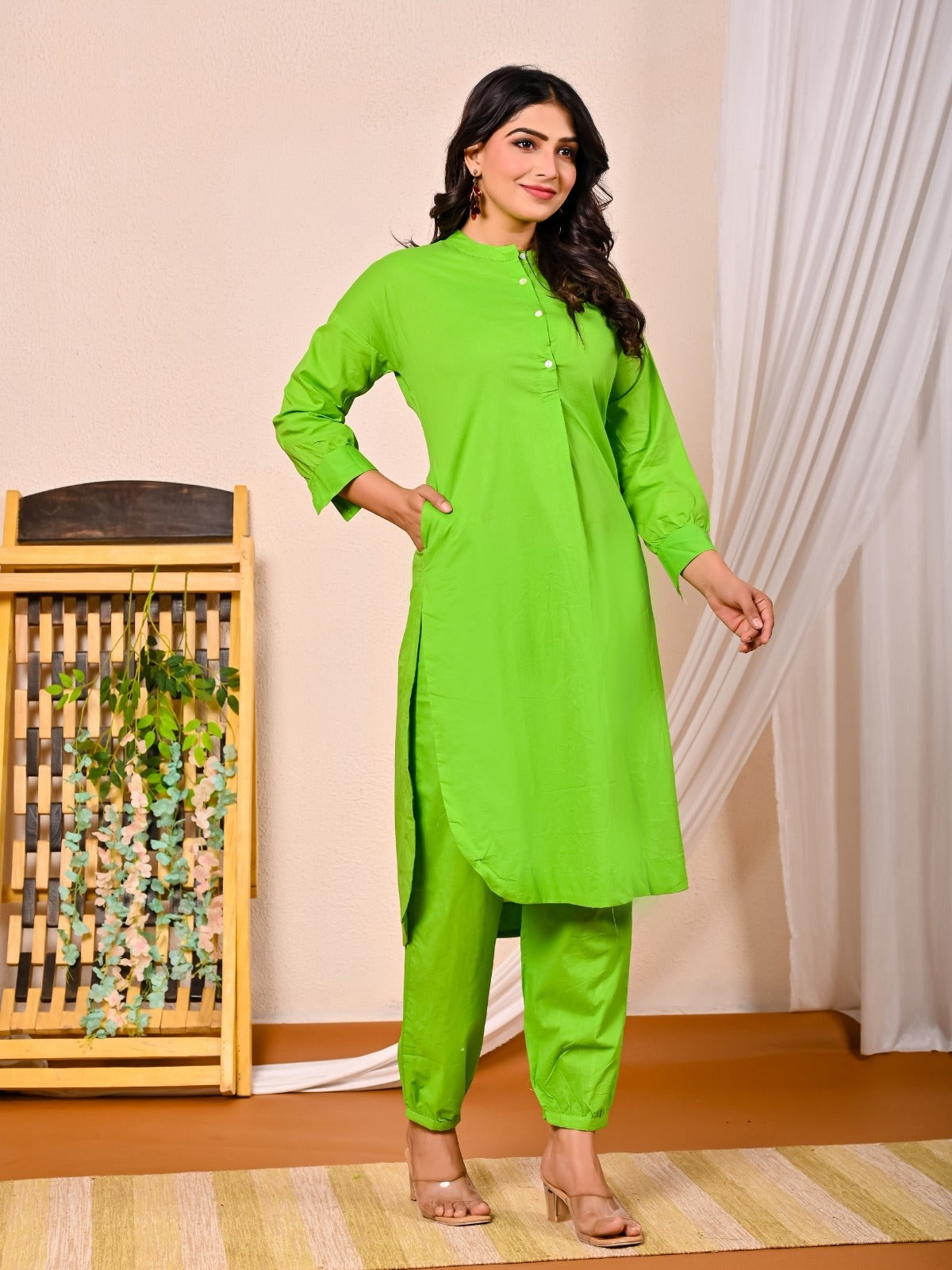 Womens Parrot Green Cotton Pathani Kurta and Pant Set