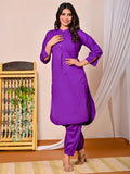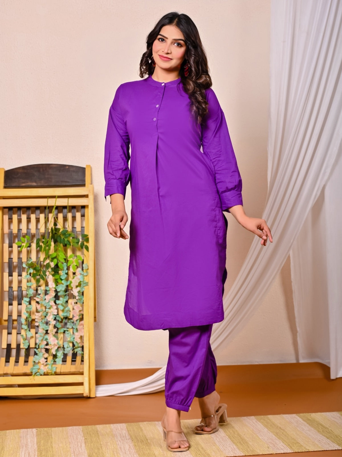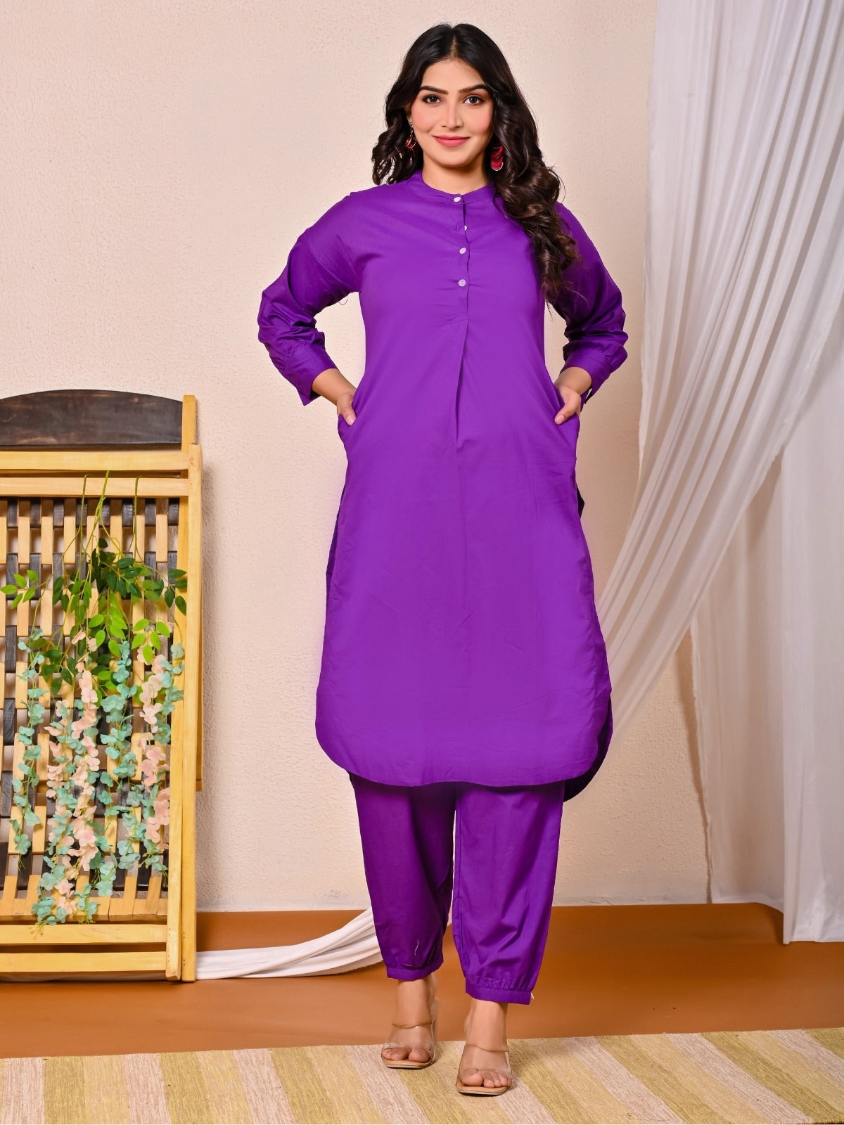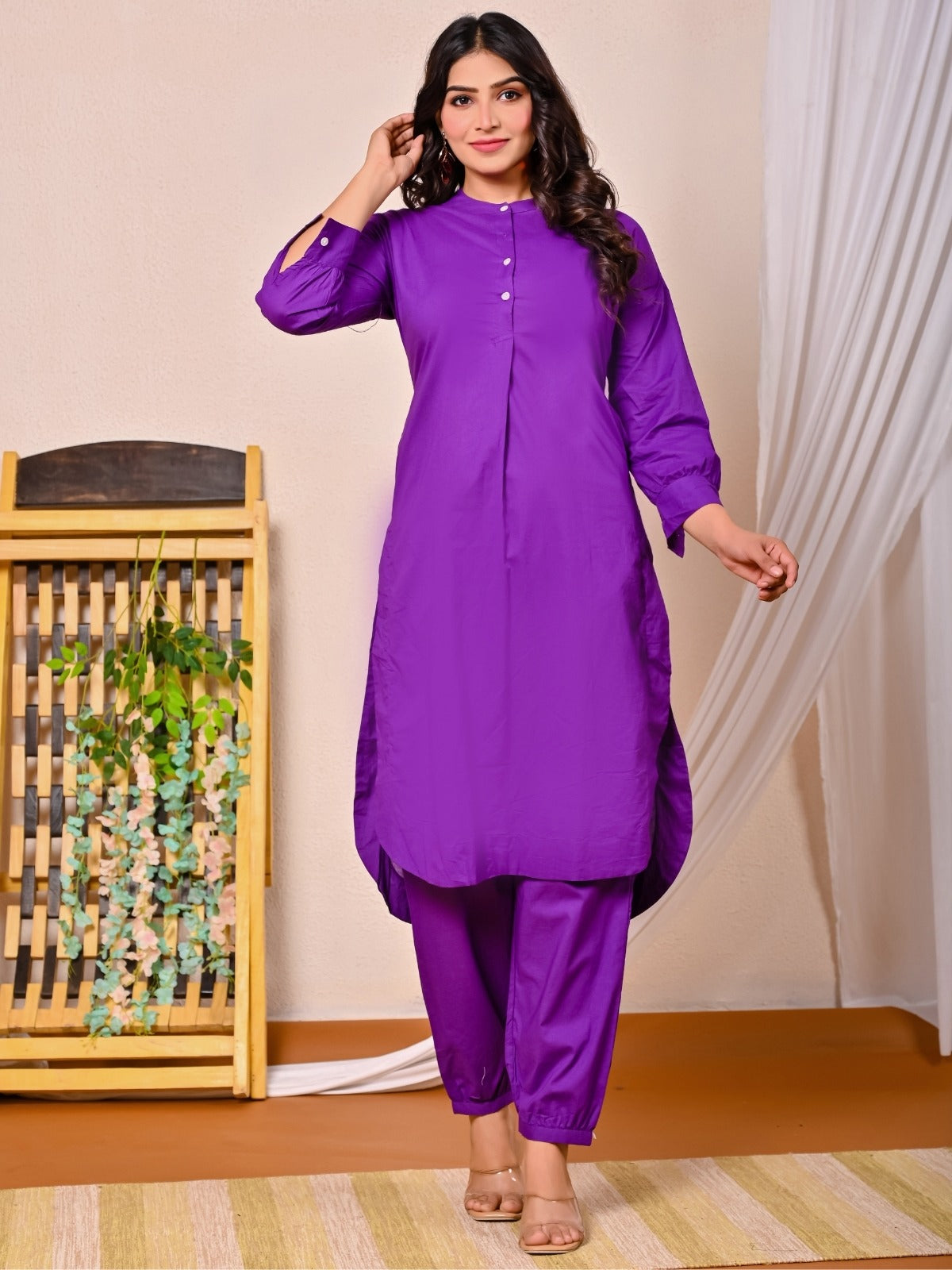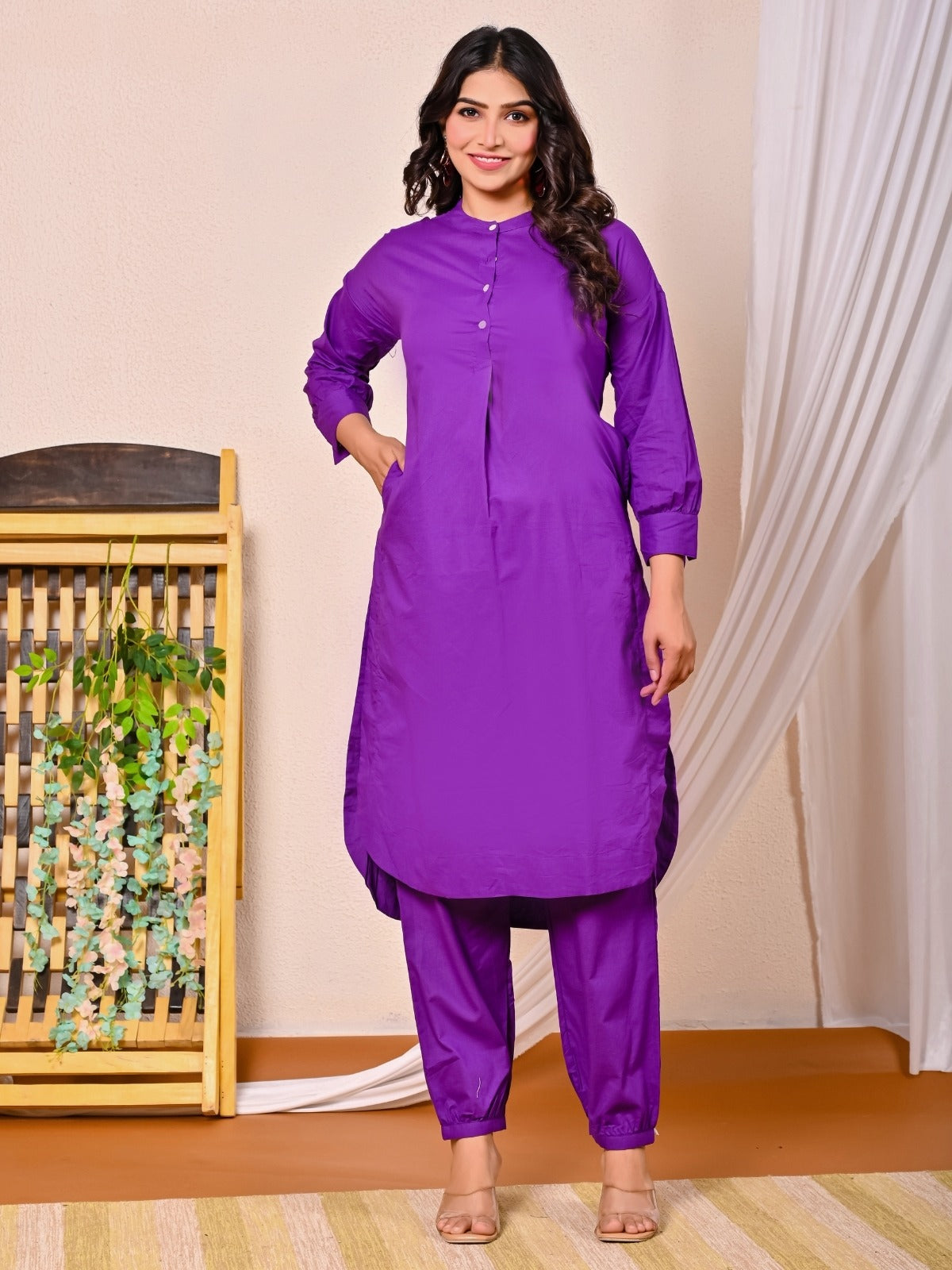 Womens Purple Cotton Pathani Kurta and Pant Set