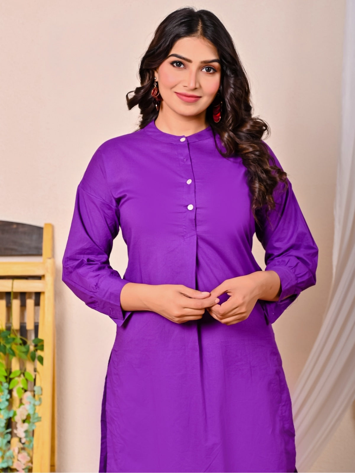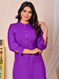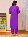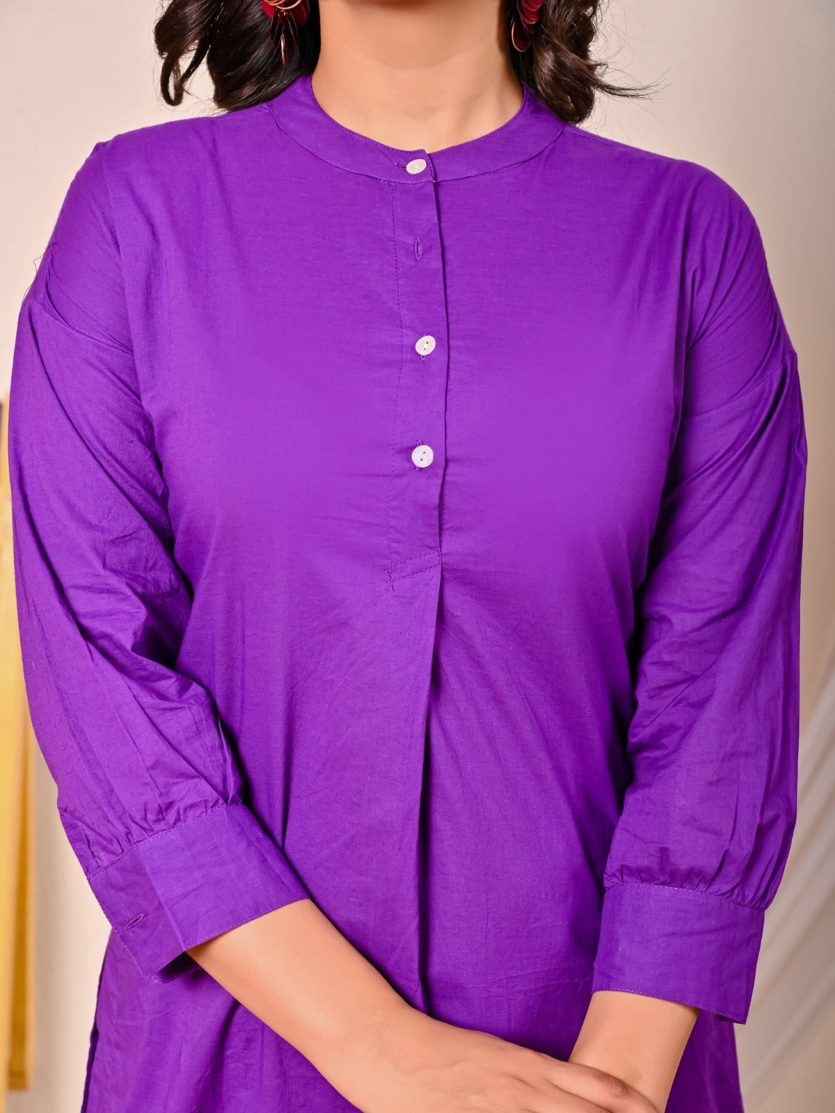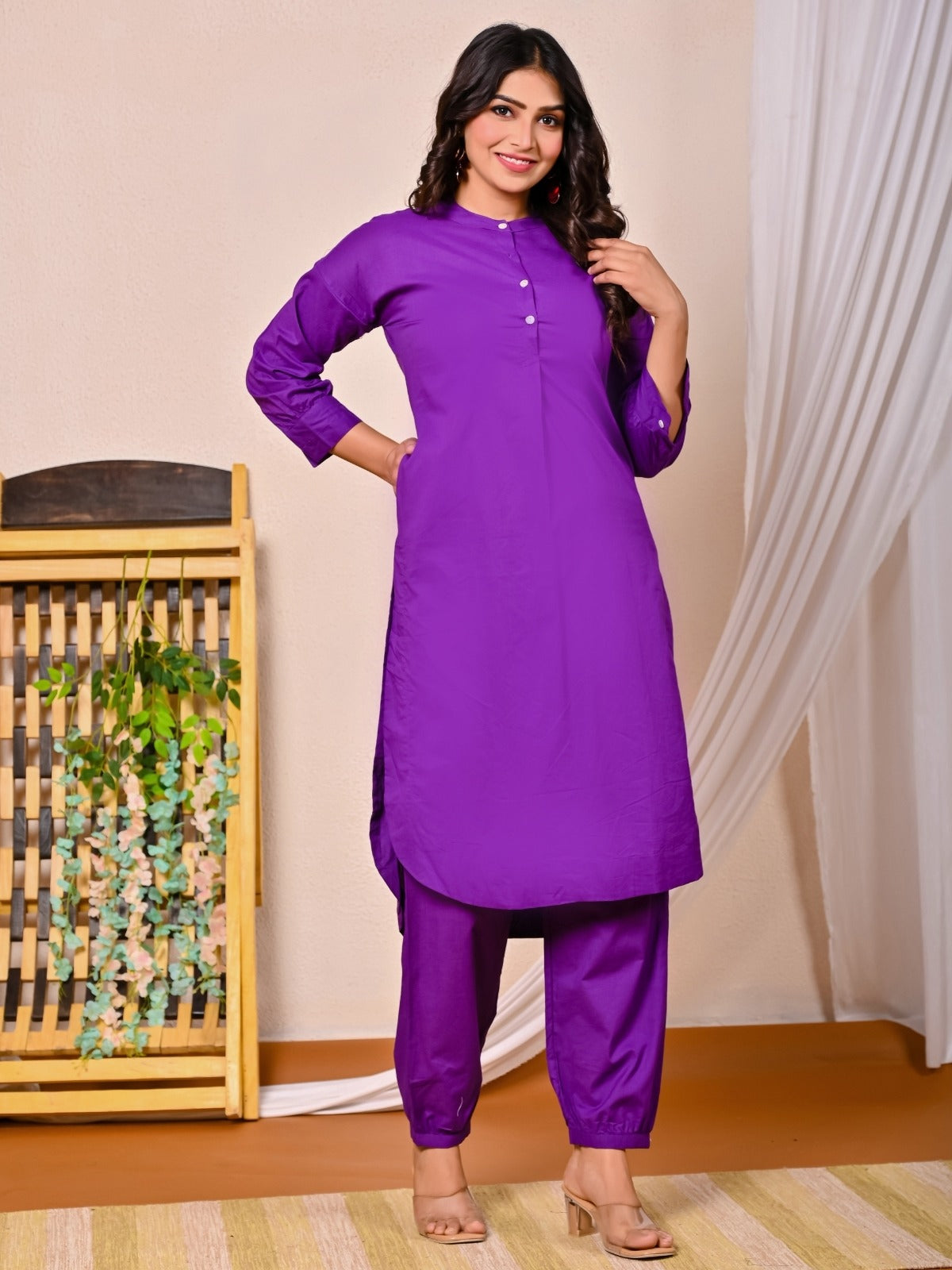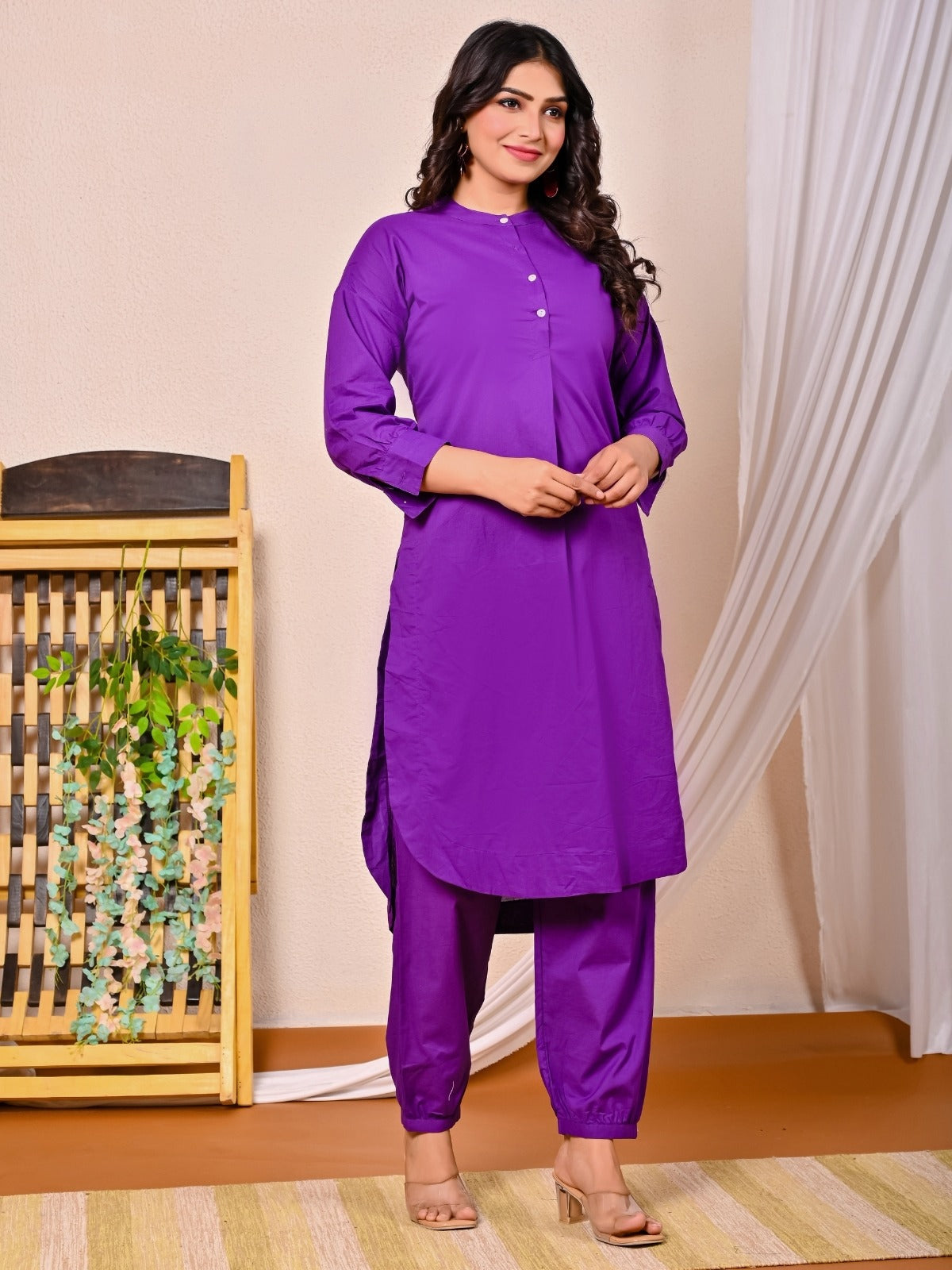 Womens Purple Cotton Pathani Kurta and Pant Set