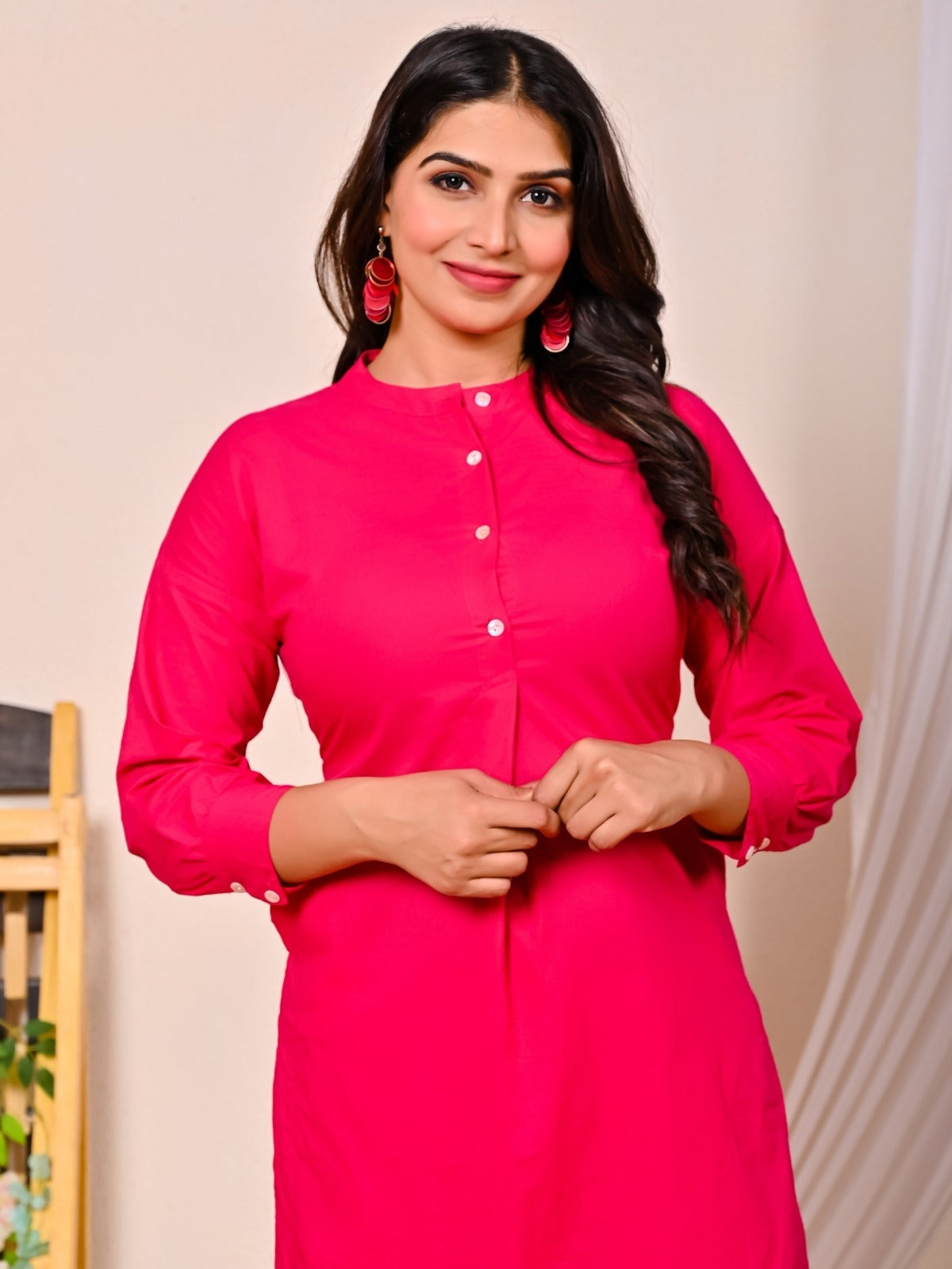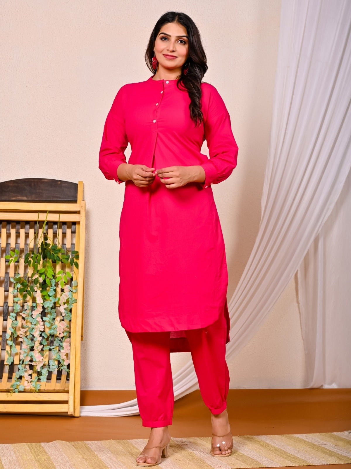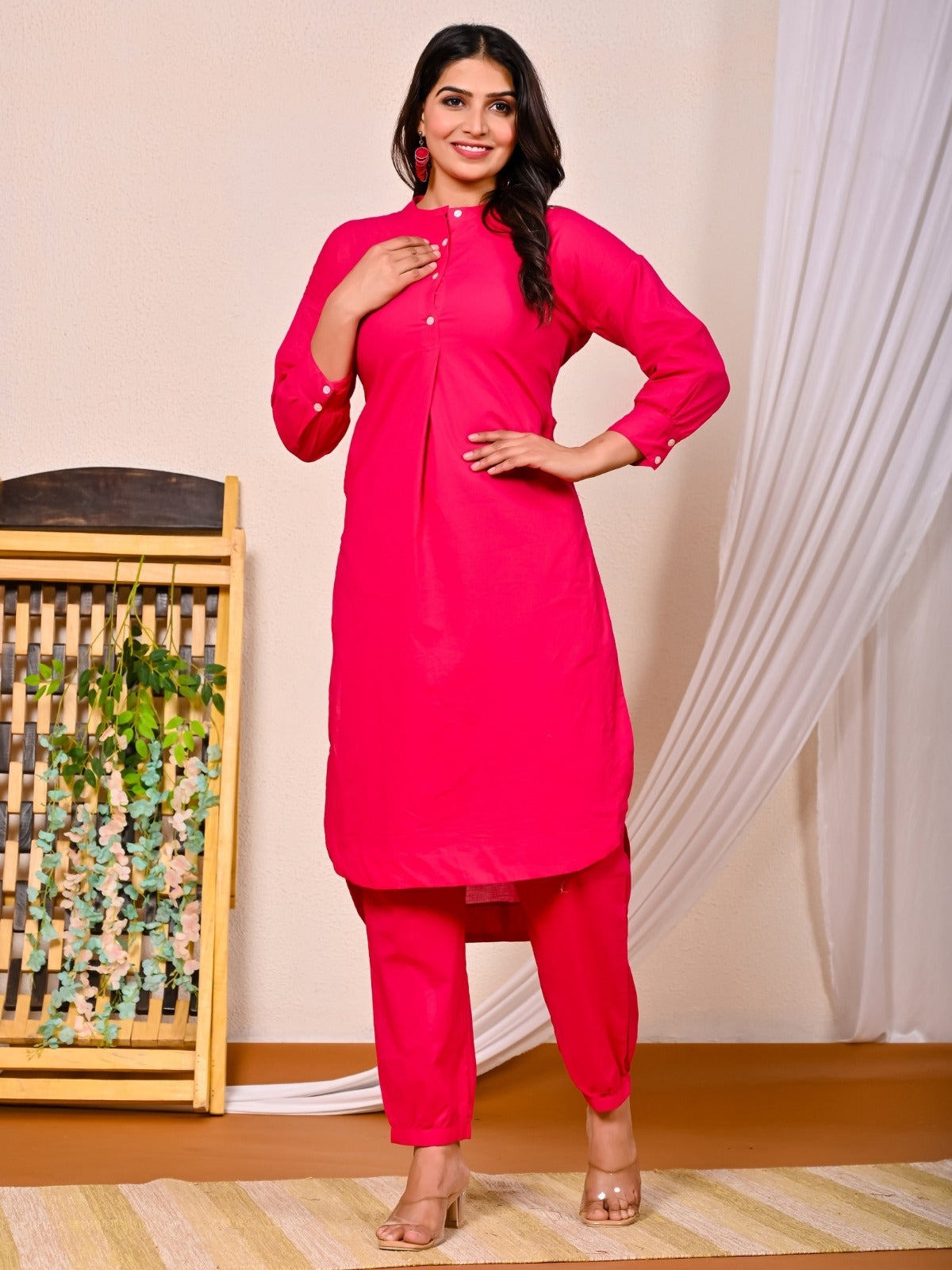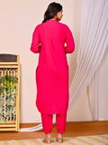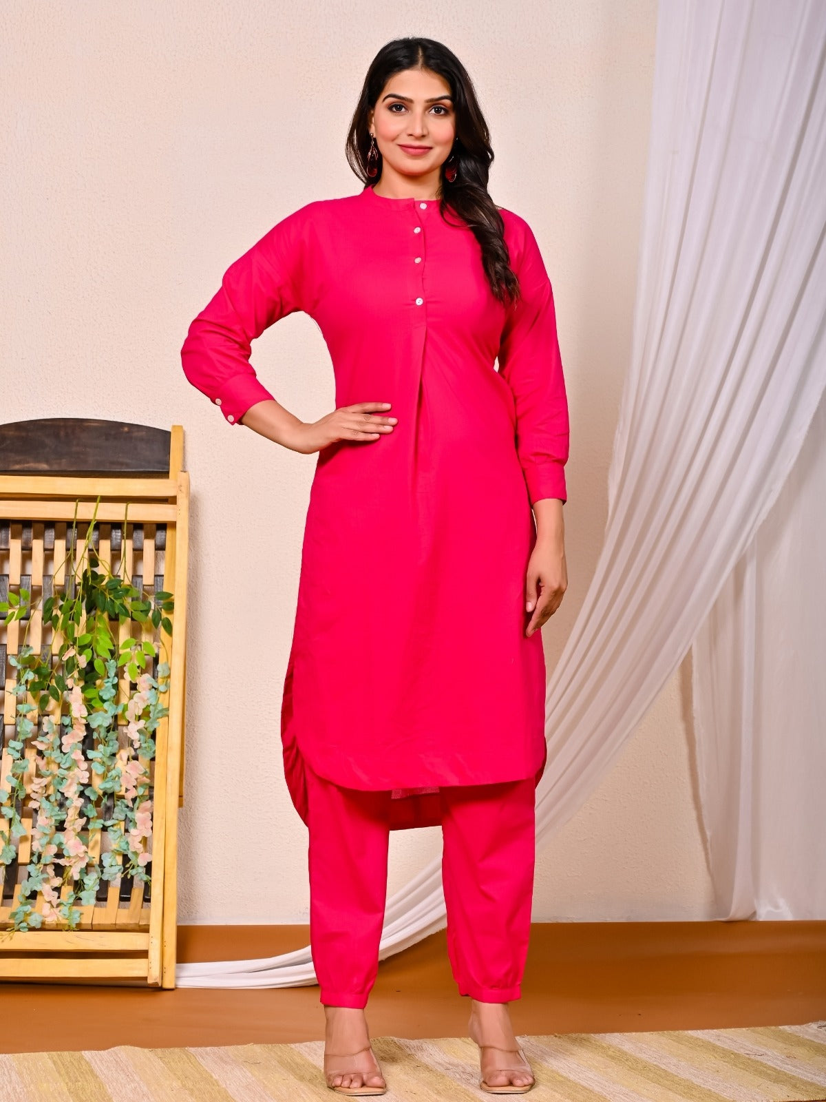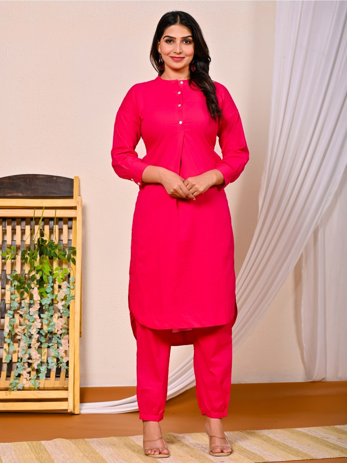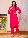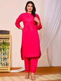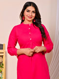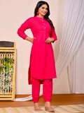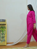 Womens Rani Pink Cotton Pathani Kurta and Pant Set