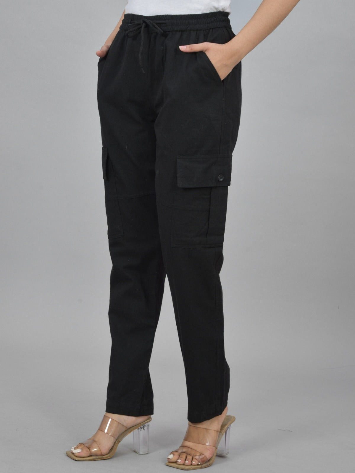 Womens Black 5 Pocket Twill Straight Cargo Pant