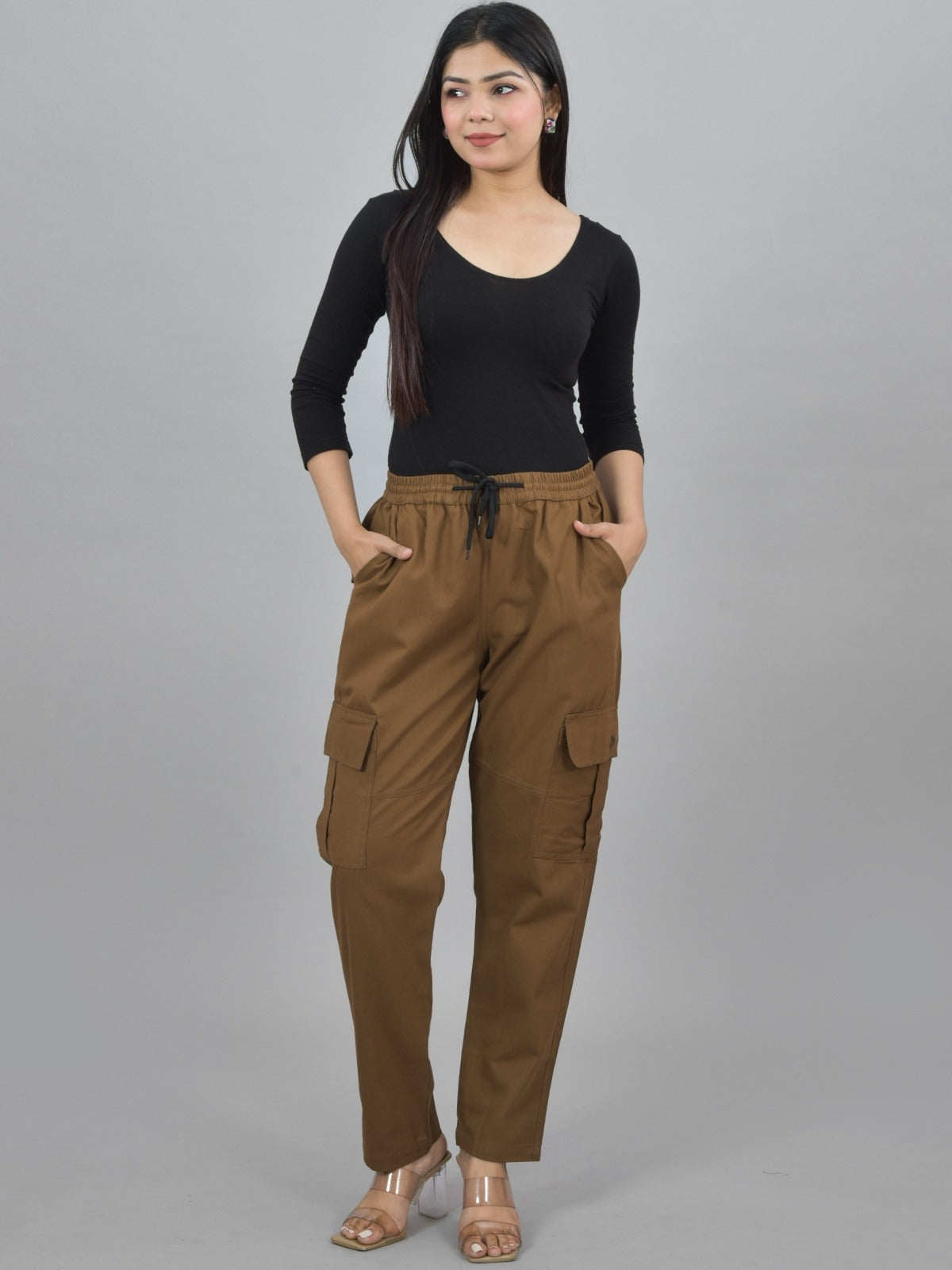 Presenting the ideal fusion of comfort and style: the Women's Twill Straight Fit Cargo Pant. These pants are tailored to fit every body type thanks to their elastic waistband that can be adjusted with a drawstring. They're appropriate for any occasion because of the well-made twill fabric, which guarantees longevity and a refined appearance. These cargo pants provide functionality without sacrificing style thanks to their five useful pockets, which include two side pockets, two slash pockets, and one back hip pocket. With the ideal fusion of cutting-edge style and usefulness, embrace adaptability. These classic, straight-fit cargo pants are a modern woman's essential; add them to your wardrobe to elevate it.