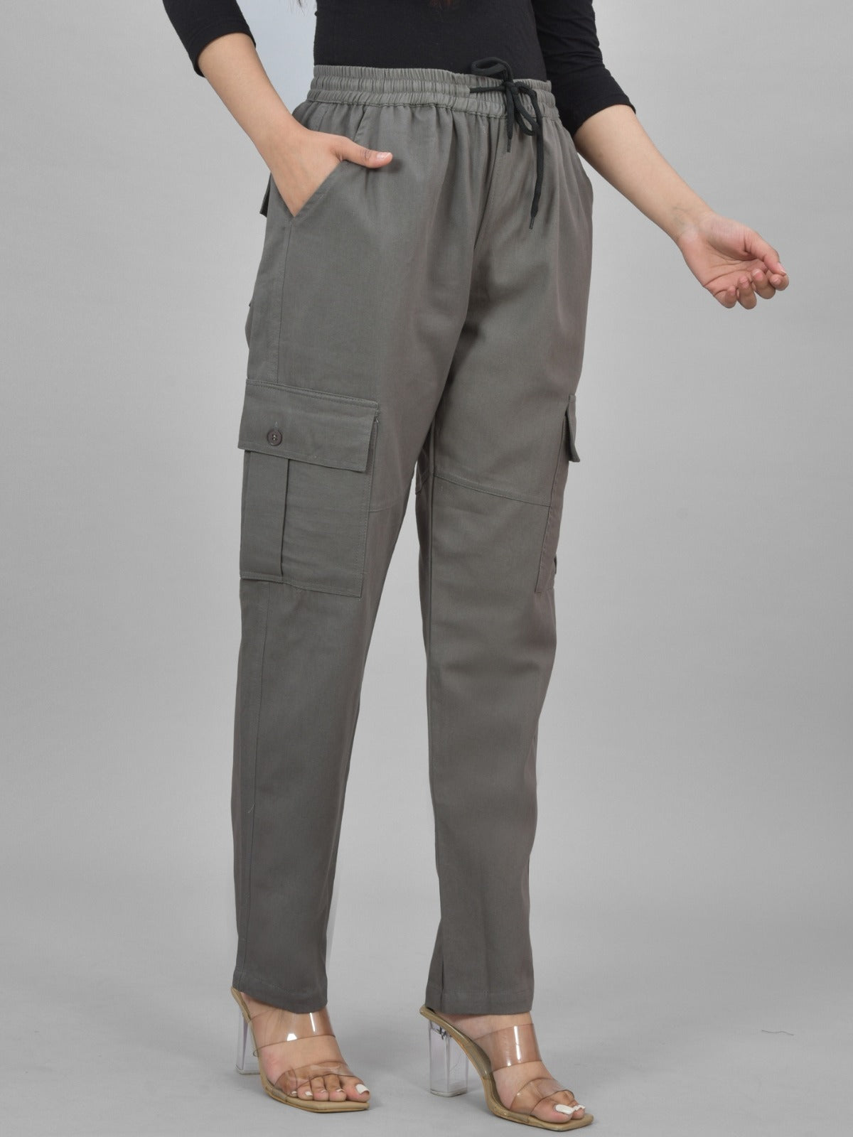 Womens Grey 5 Pocket Twill Straight Cargo Pant