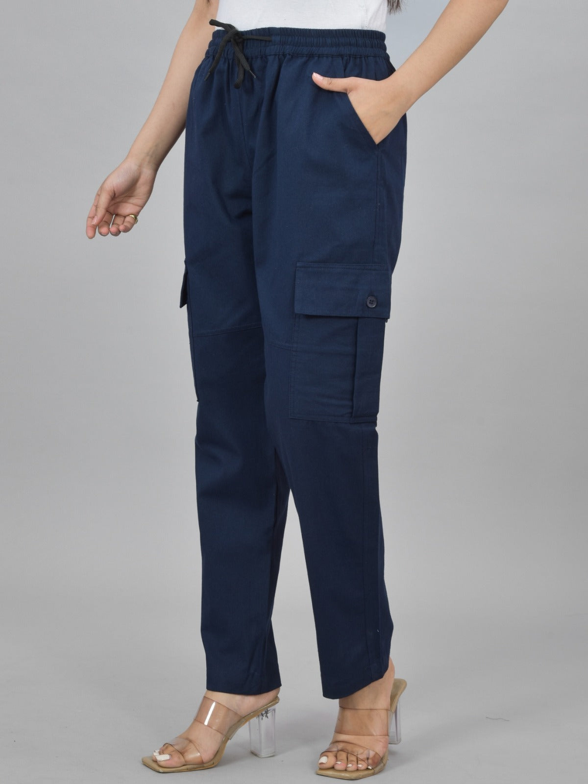 Womens Navy Blue 5 Pocket Twill Straight Cargo Pant