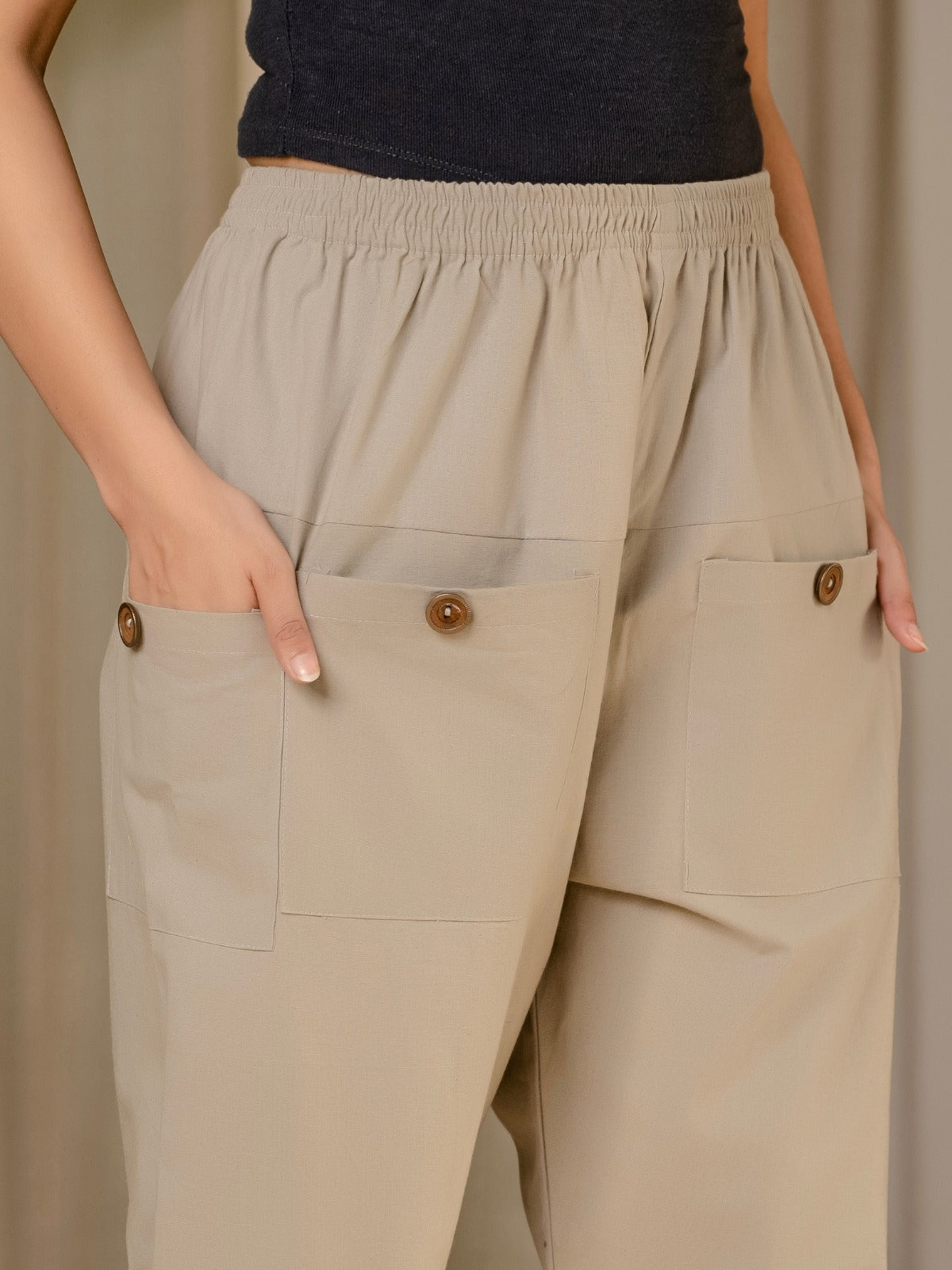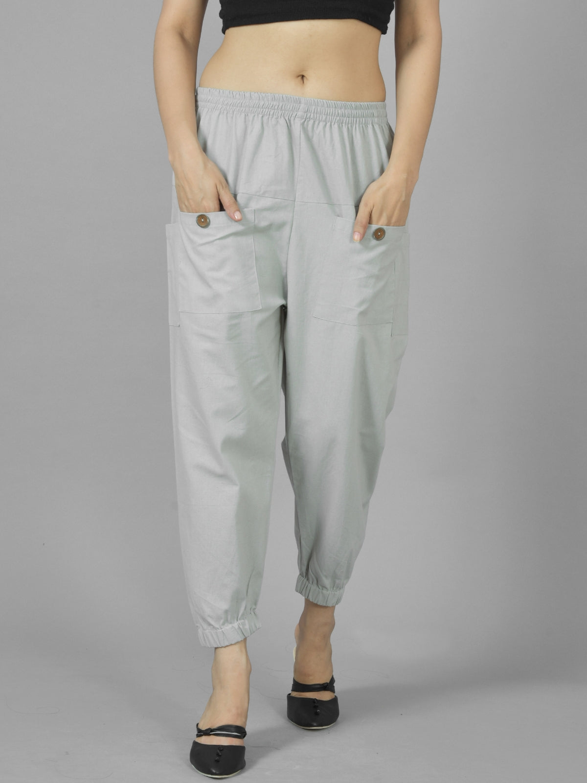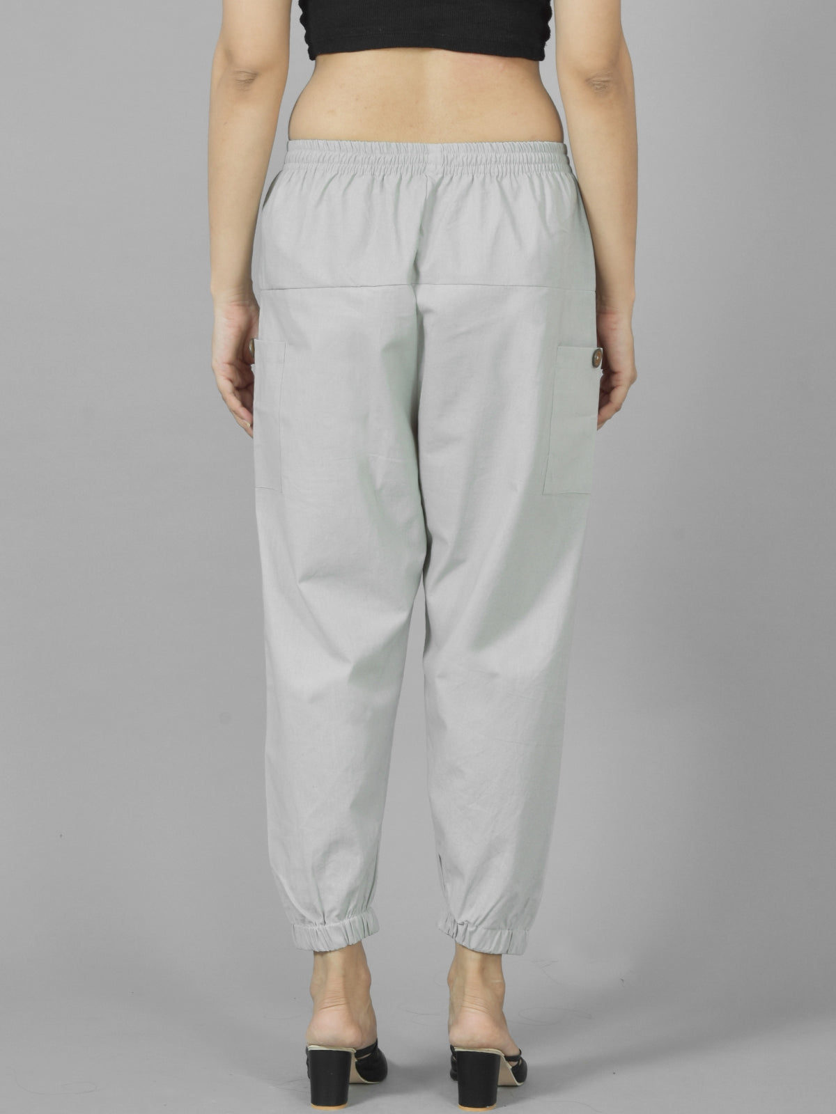 Women's Melange Grey Four Pocket Cotton Cargo Pants