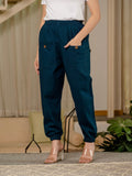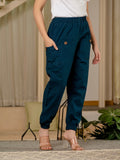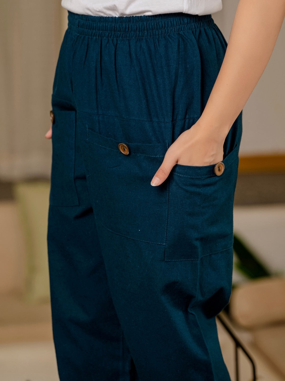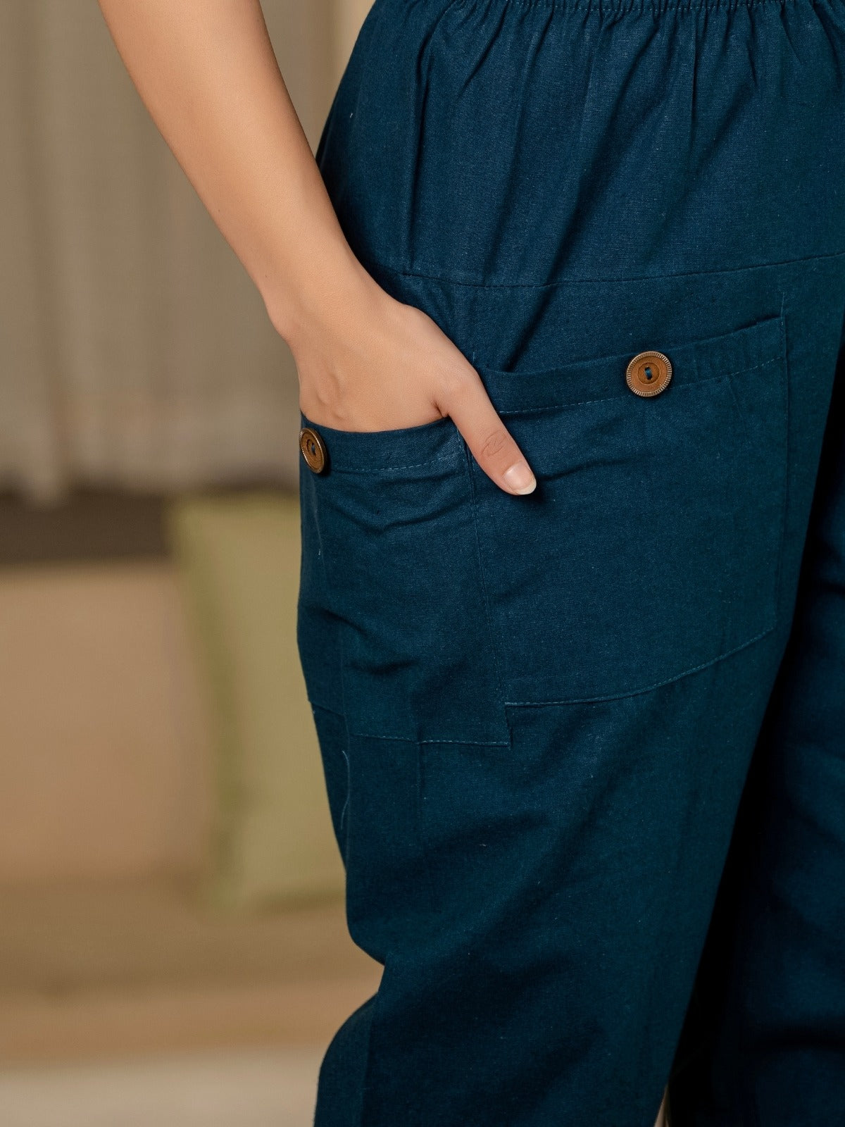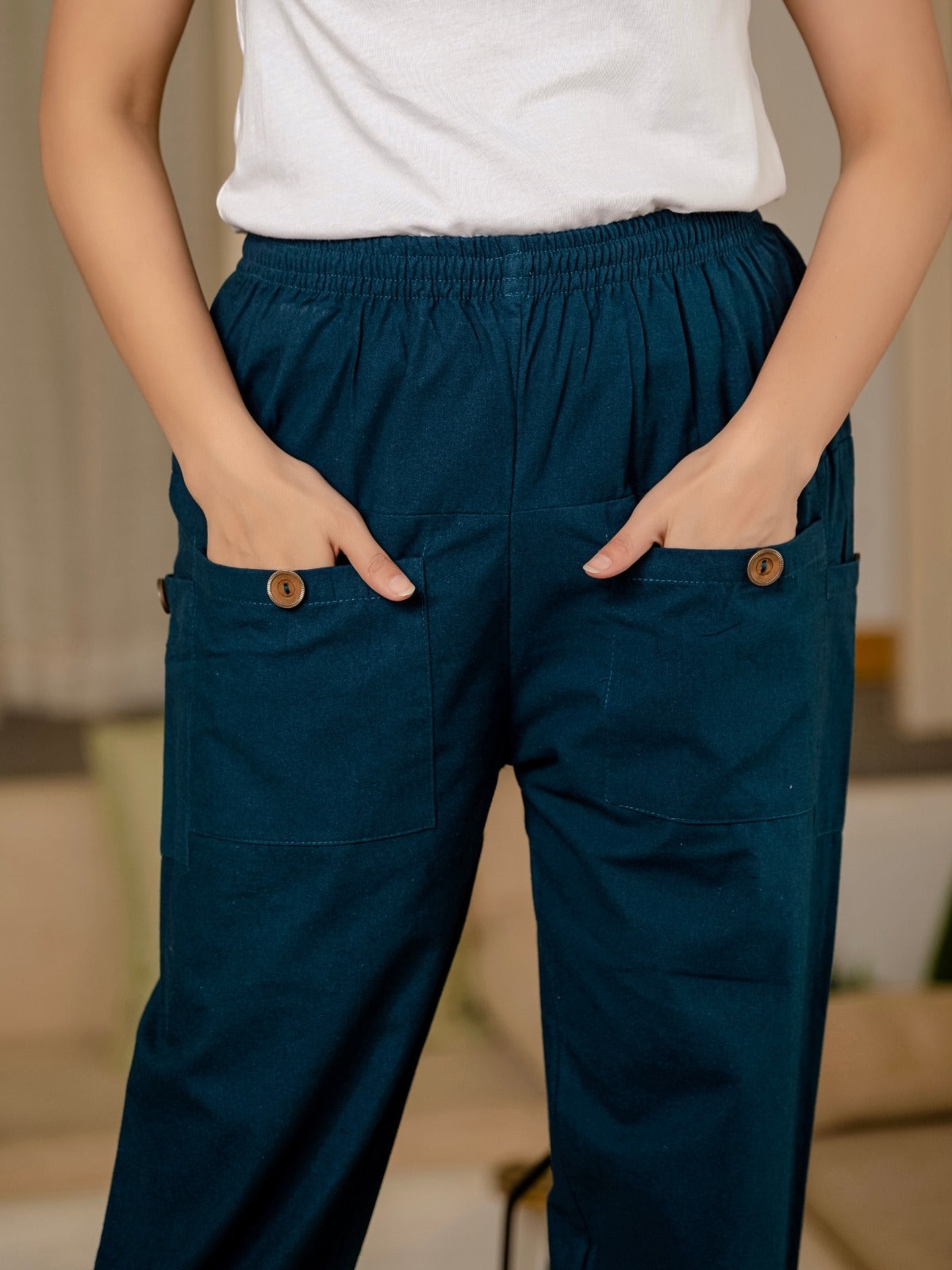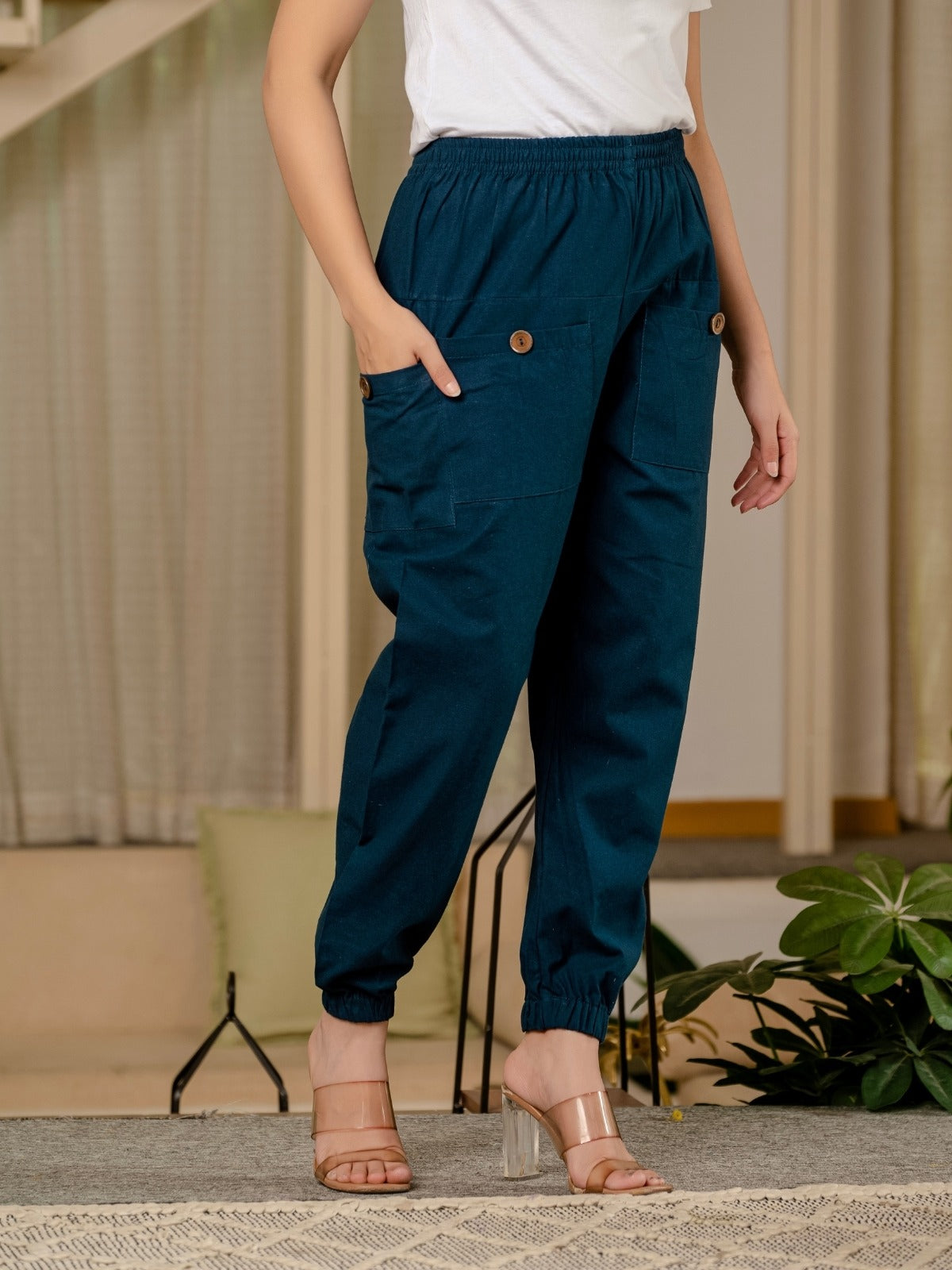 Women's Teal Blue Four Pocket Cotton Cargo Pants