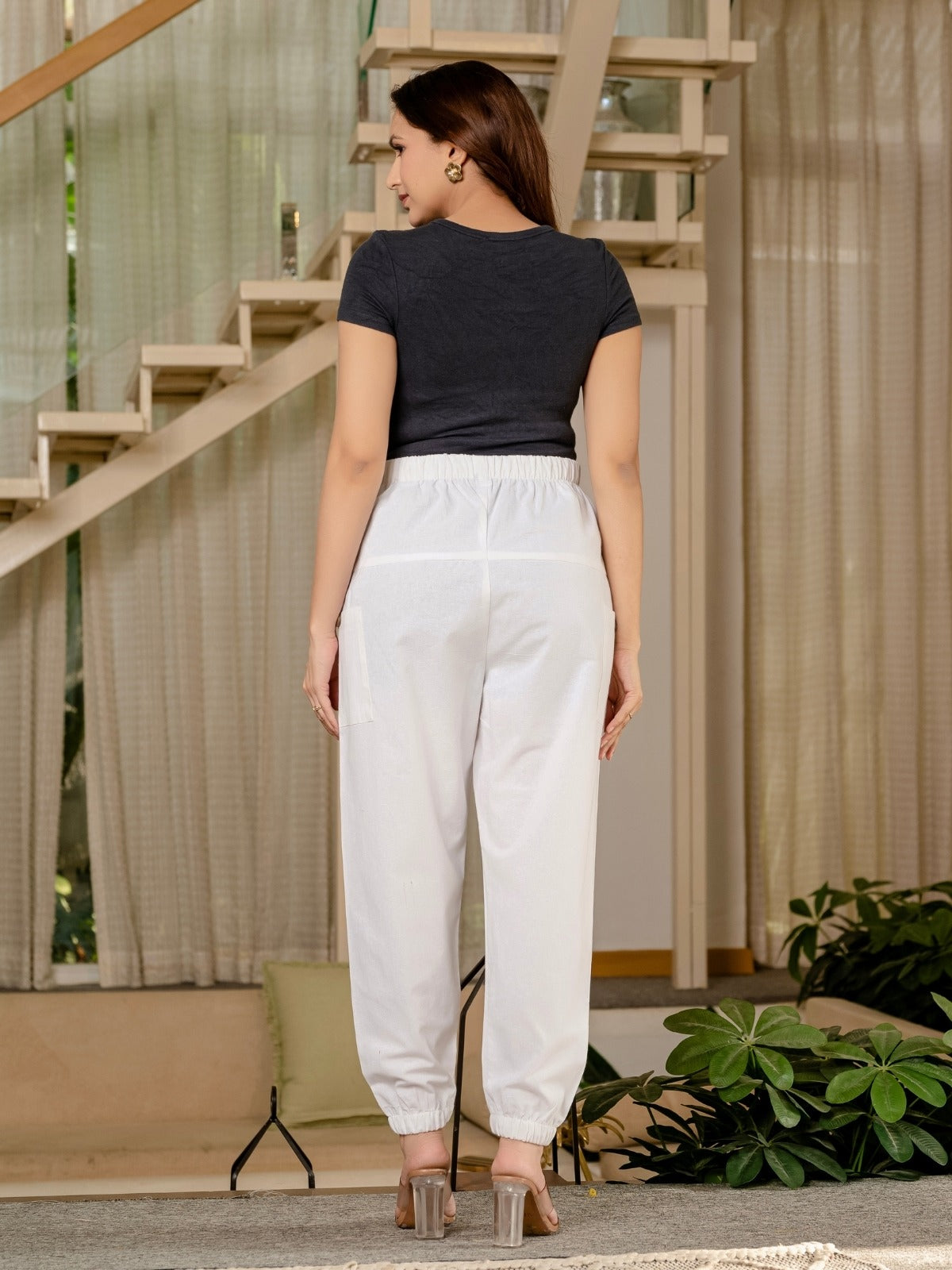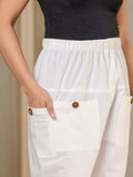Women's White Four Pocket Cotton Cargo Pants