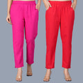 Pack Of 2 Womens Regular Fit Rani And Red Fully Elastic Waistband Cotton Trouser