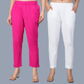 Pack Of 2 Womens Regular Fit Rani And White Fully Elastic Waistband Cotton Trouser