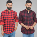 Pack Of 2 Mens Red And Wine Check Cotton Short Kurta Combo