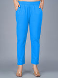 Pack Of 2 Womens Regular Fit SKy Blue And Dark Green Fully Elastic Waistband Cotton Trouser
