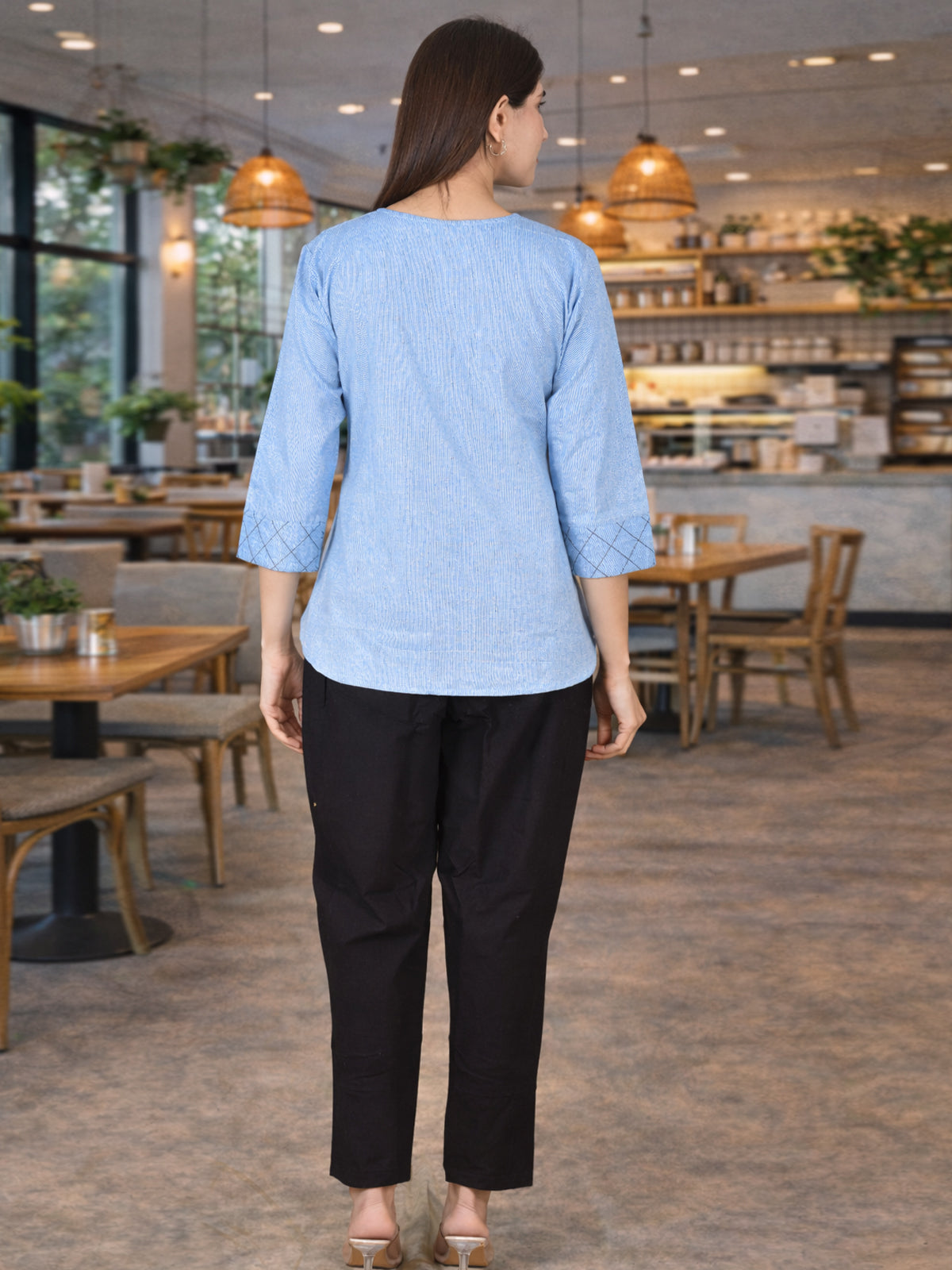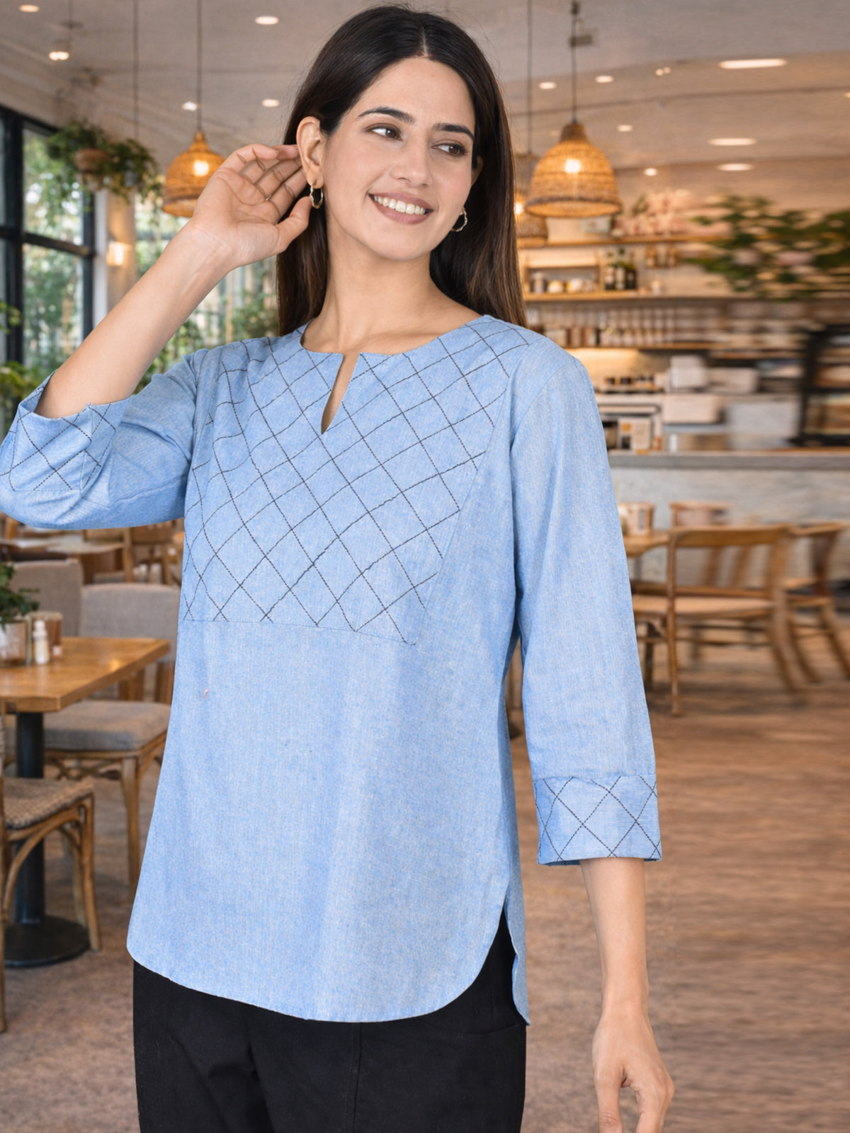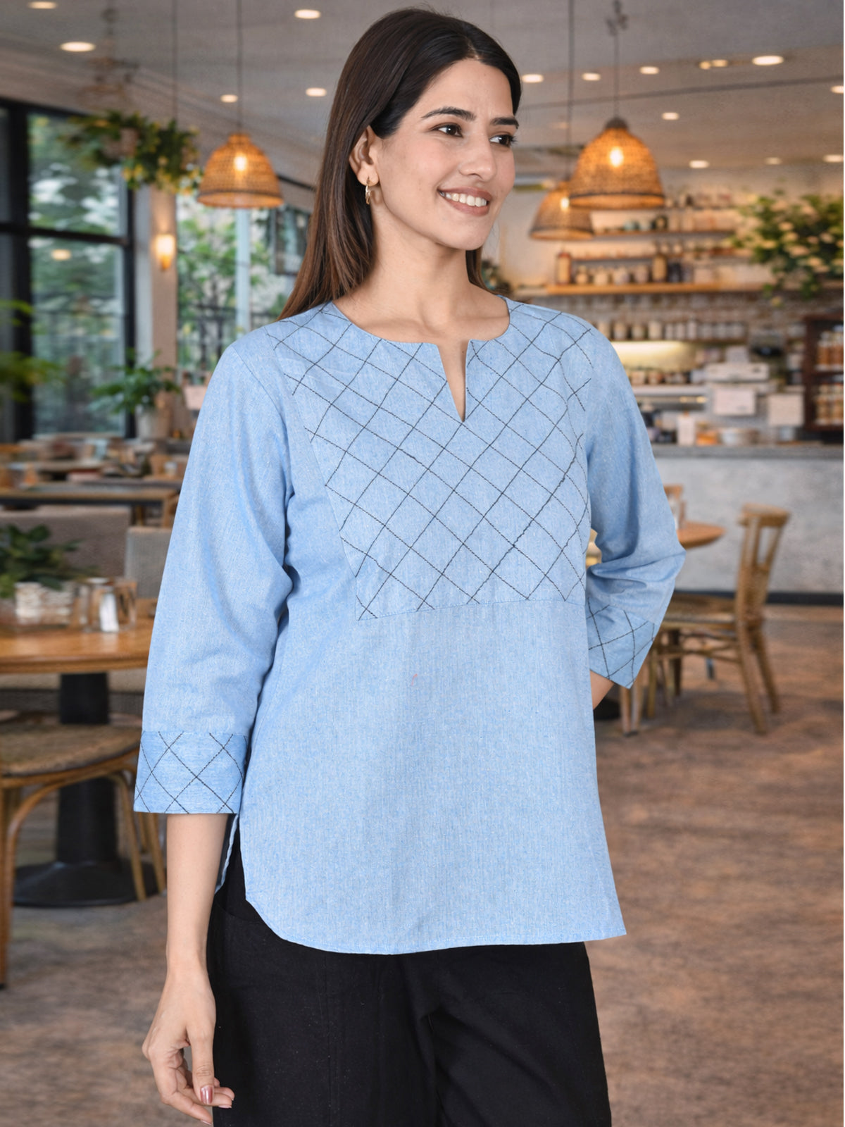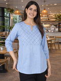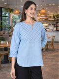 Sky Blue Handloom Cotton Yoke Top
