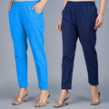 Pack Of 2 Womens Regular Fit SKy Blue And Navy Blue Fully Elastic Waistband Cotton Trouser