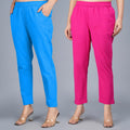 Pack Of 2 Womens Regular Fit SKy Blue And Rani Fully Elastic Waistband Cotton Trouser
