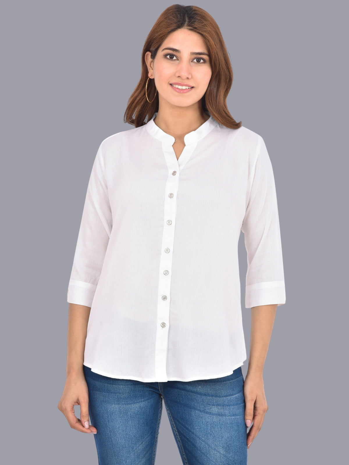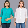 Pack Of 2 Womens Solid Sky Blue and White Rayon Chinese Collar Shirts Combo
