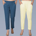 Pack Of 2 Womens Regular Fit Teal Blue And Cream Fully Elastic Waistband Cotton Trouser