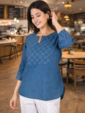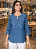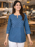 Tealblue Handloom Cotton Yoke Top