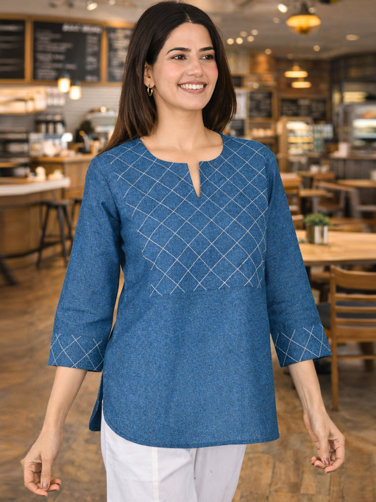 Quaclo Cotton Handloom Yoke Tops for women are designed with a regular fit and made from soft, breathable handloom cotton fabric for all-day comfort and a graceful look. The elegant yoke design adds a stylish and ethnic touch, making these tops perfect for daily wear, office, or casual outings. The solid color and simple pattern make it easy to pair with jeans, leggings, or trousers for a complete and trendy outfit. Shop from a wide range of Cotton Handloom Yoke Tops from Quaclo and upgrade your everyday wardrobe with comfort and style.