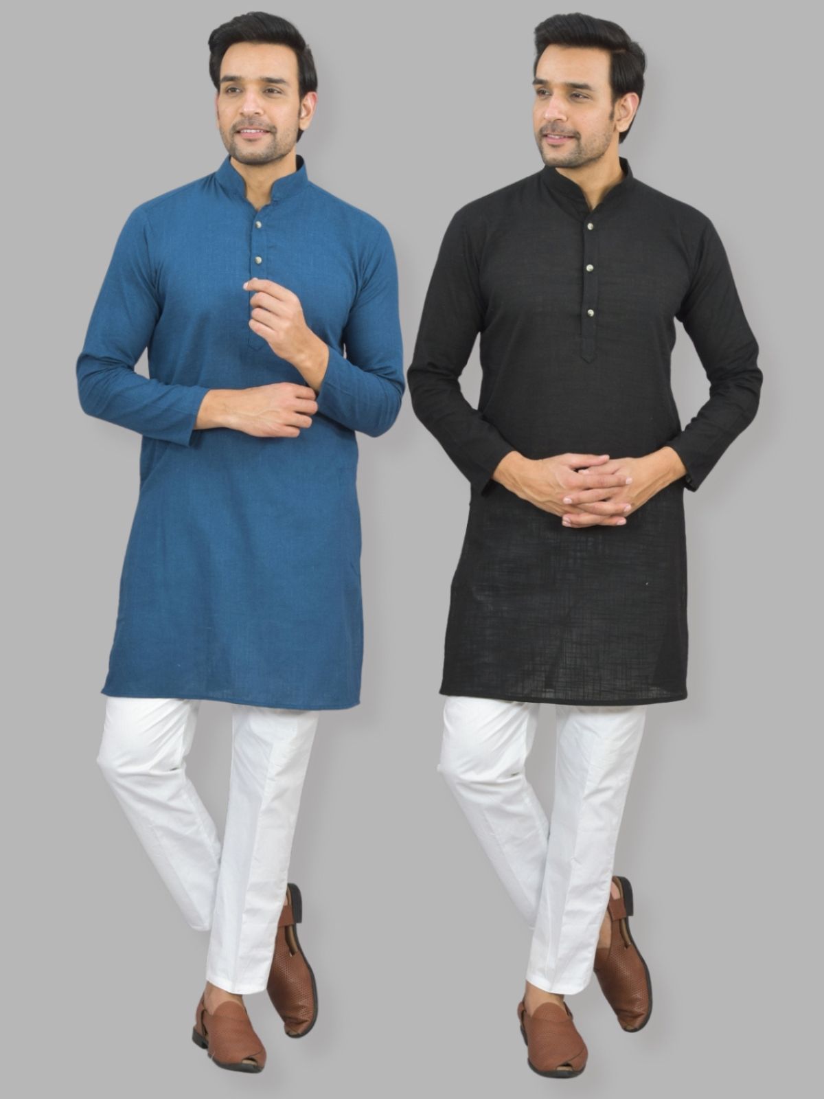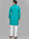 Mens Solid Teal Blue And Black Cotton Long Kurta Combo